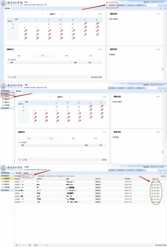 评教时间:2025年12月23日8:00-2026年1月15日12:00
