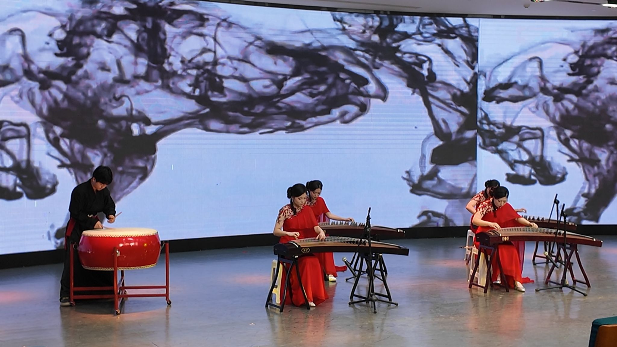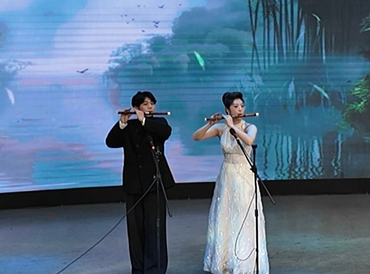 活动现场,教育科学与音乐学院师生带来了多组精彩纷呈的中国传统艺术表演。竹笛二重奏《大青山下》旋律悠扬婉转,以音符勾勒出山河壮阔的磅礴气象;古筝四重奏《卧虎藏龙》弦音铿锵灵动,借乐声铺陈出独具韵味的东方美学意境;王艳老师倾情演唱的《节日欢歌》,以嘹亮高亢的声线传递出喜庆祥和的浓厚氛围。传统民乐与声乐表演轮番登场,充分展现了中原文化的独特魅力与深厚底蕴,也为新星市文旅资源深耕中原市场搭建起坚实的艺术桥梁。