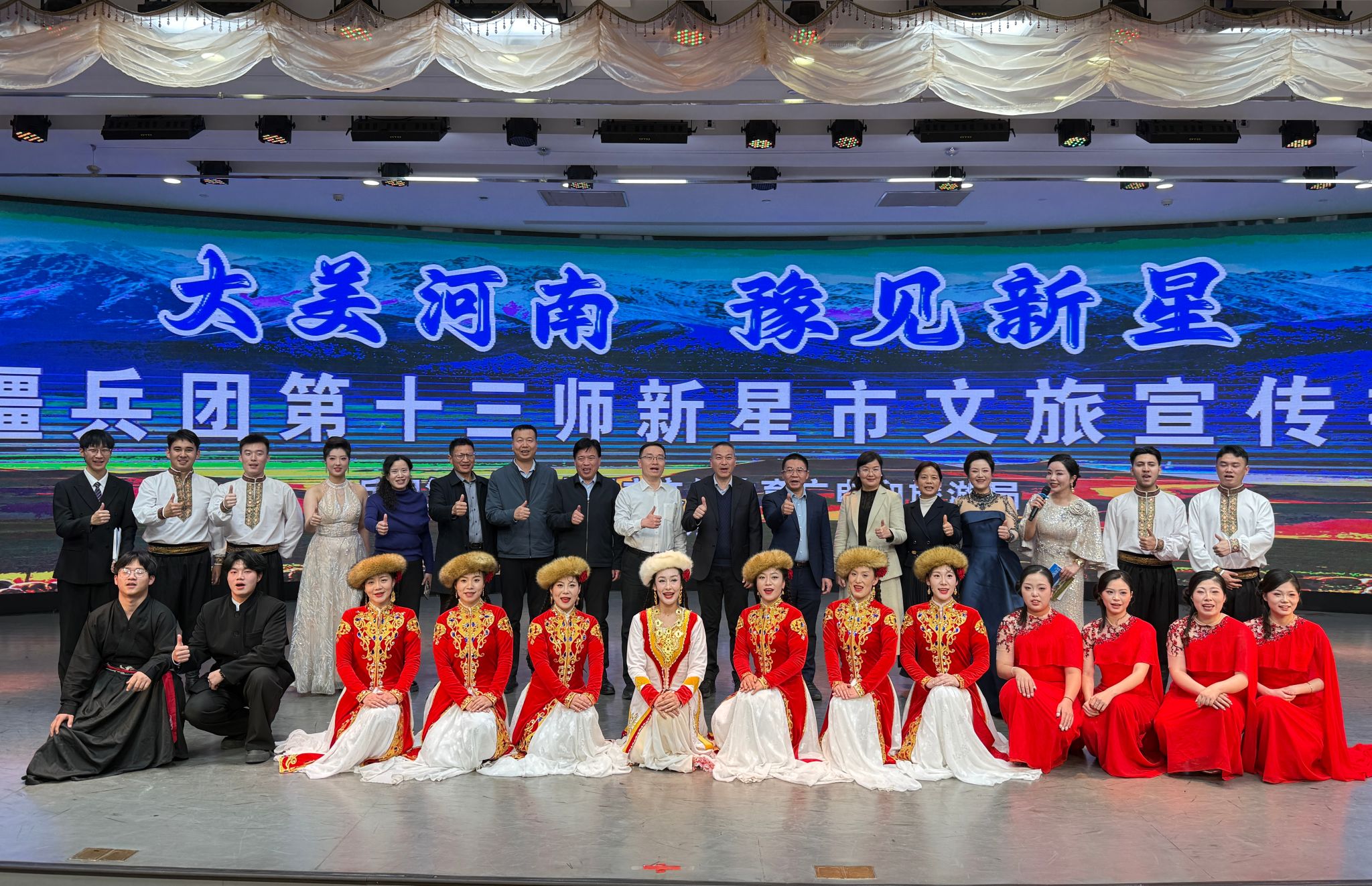 12月10日,“大美河南 豫见新星”新疆生产建设兵团第十三师新星市文旅宣传推介活动成功举办。洛阳理工学院教育科学与音乐学院师生受邀参演,与兵团十三师文艺团艺术团联袂献艺,呈献了一场融汇中原韵味与边疆风情的文化盛宴,为豫疆两地深厚情谊书写了生动注脚。