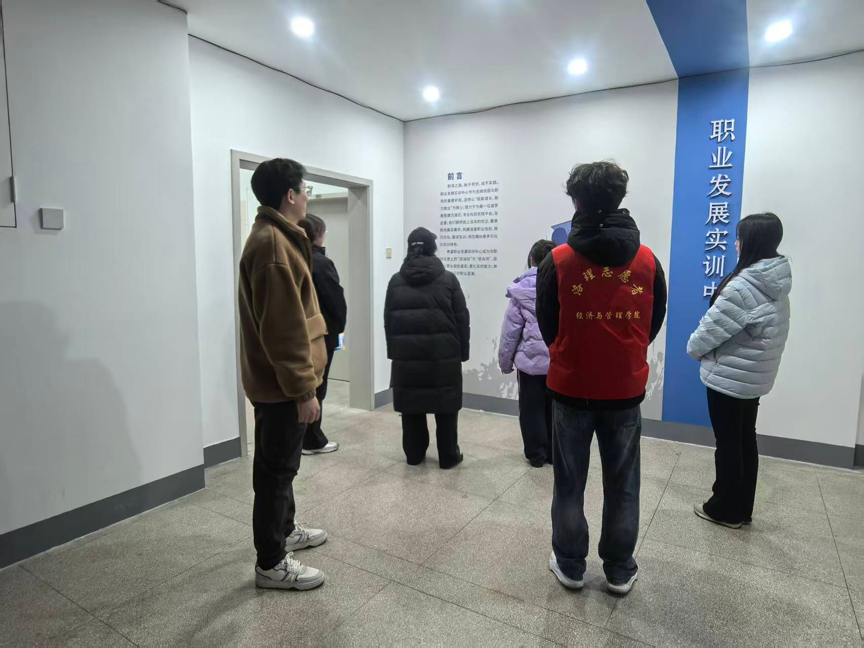 活动期间,学院带队老师王凯通还带领同学们前往位于教学楼5楼的职业发展实训中心进行参观。就业处志愿者为中心内各个功能房间及其专业设施、用途作了详细讲解,使同学们对实训中心所能提供的职业测评、模拟面试、职业技能训练、就业咨询等专业服务有了更为直观和深入的了解,也让大家对未来如何充分利用学校资源获取个性化的职业发展支持有了清晰认识。