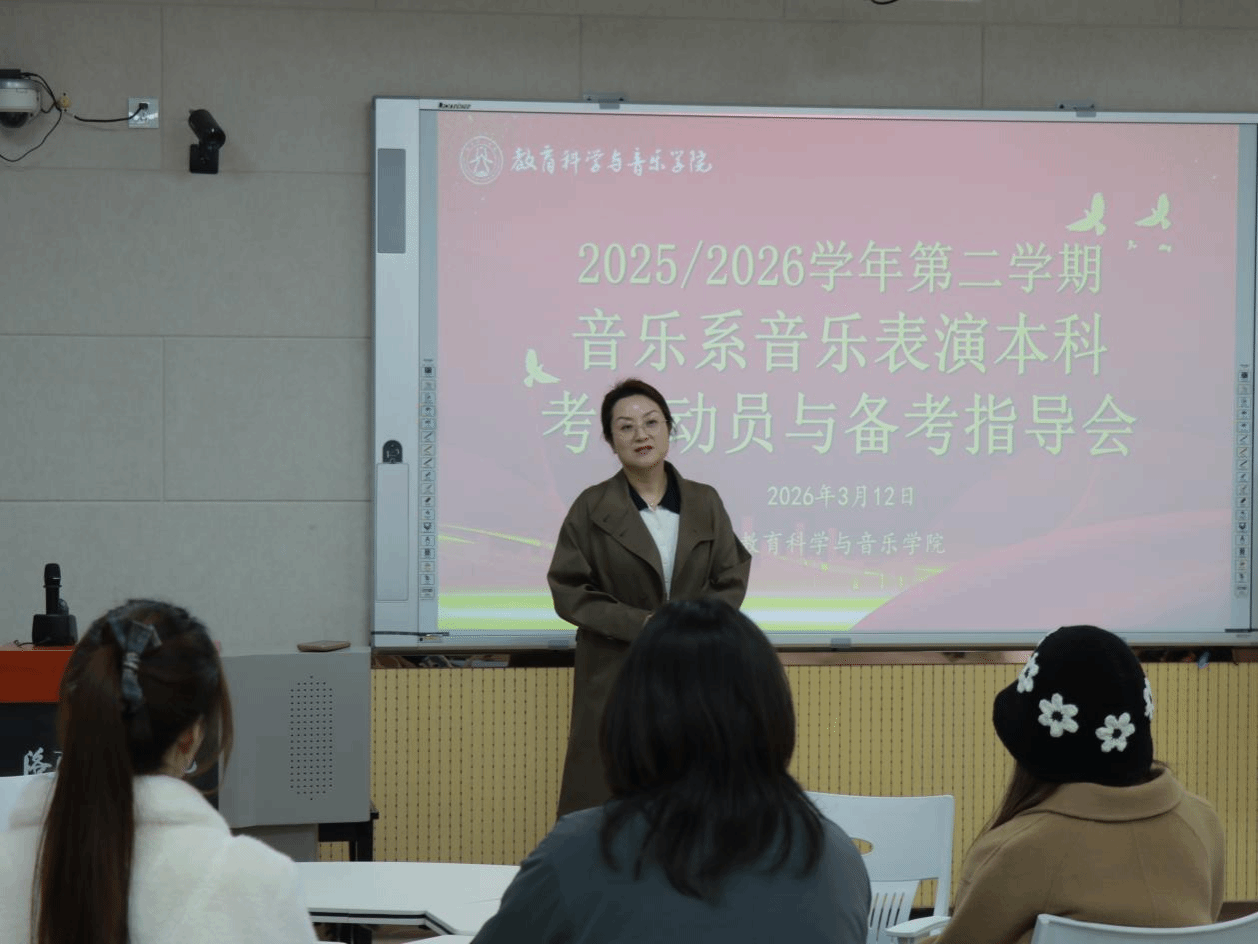 3月12日晚,我院音乐系考研留学动员与备考指导会在师范楼F413举行。音乐系主任王艳老师、段一豪老师担任主讲,音乐表演专业学生积极参与,现场气氛热烈高涨。