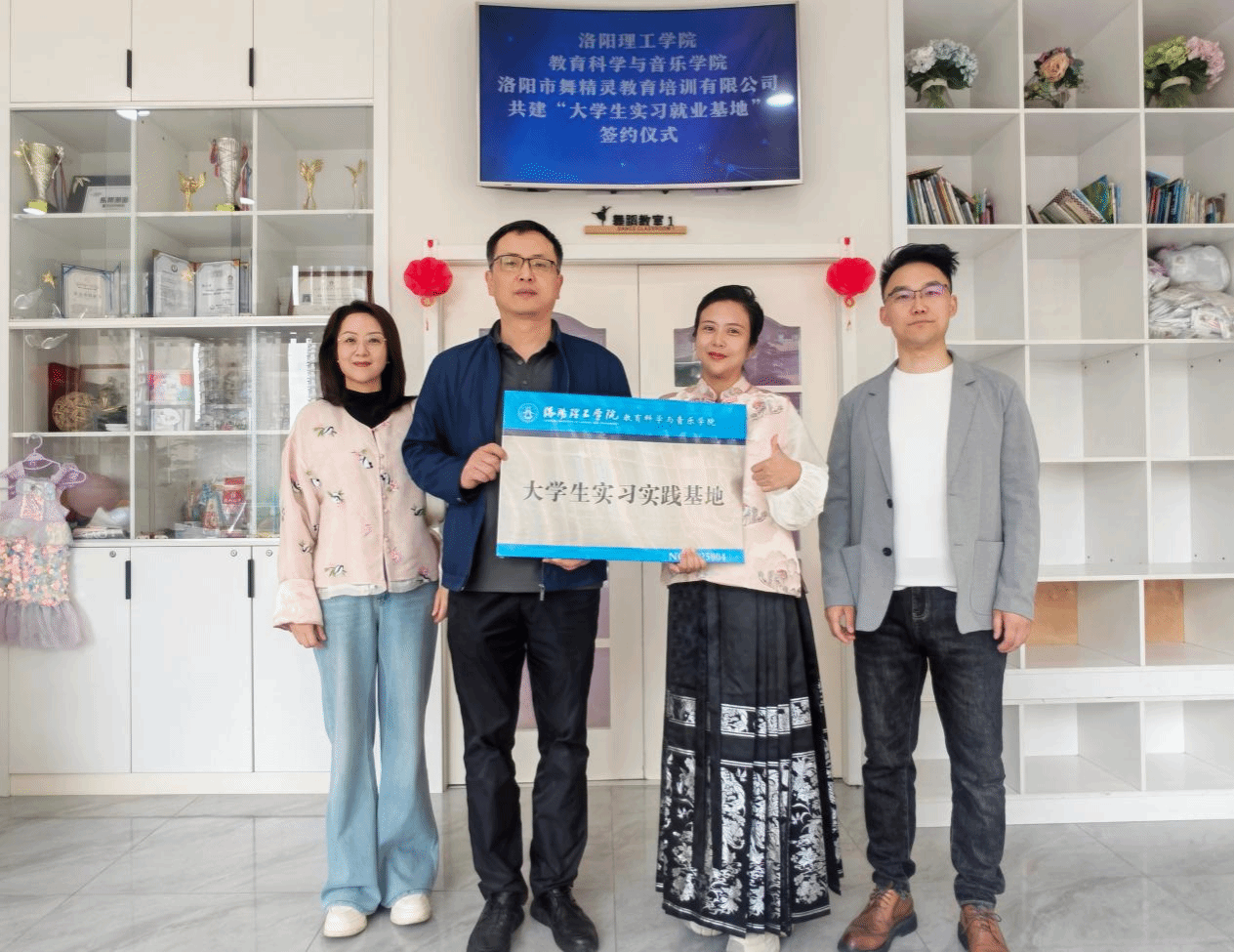 为深化产教融合、拓宽毕业生就业渠道,切实推进访企拓岗工作走深走实,4月3日上午,洛阳理工学院教育科学与音乐学院副院长李自浩、音乐系主任王艳、音乐系副主任刘凯一行,前往洛阳市舞精灵教育培训有限公司开展访企拓岗交流,并举行校企合作签约及授牌仪式。