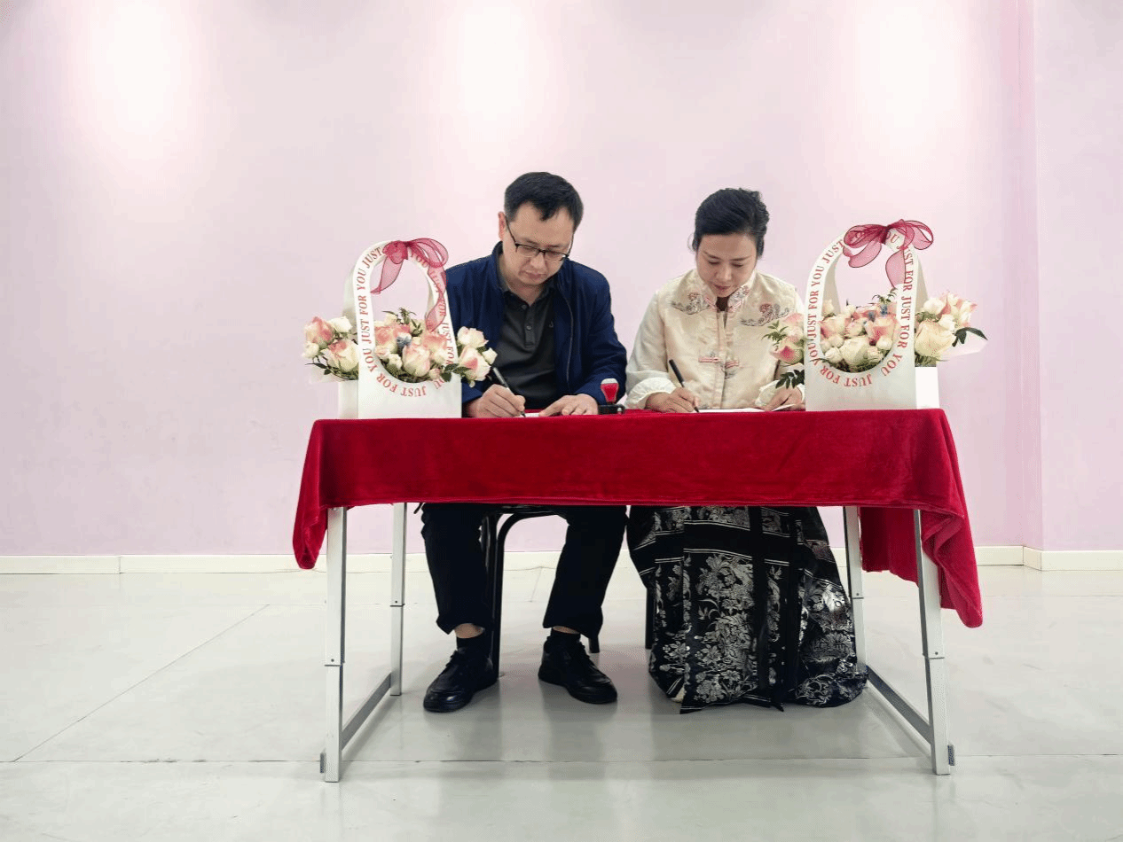 会谈结束后,双方举行签约仪式,李自浩副院长、郭菲校长分别代表校企双方签署了校企合作协议。随后,考察组为洛阳市舞精灵教育培训有限公司授予“大学生实习实践基地”牌匾,郭菲校长代表公司揭牌,标志着双方校企合作正式落地,为后续深度合作奠定坚实基础。