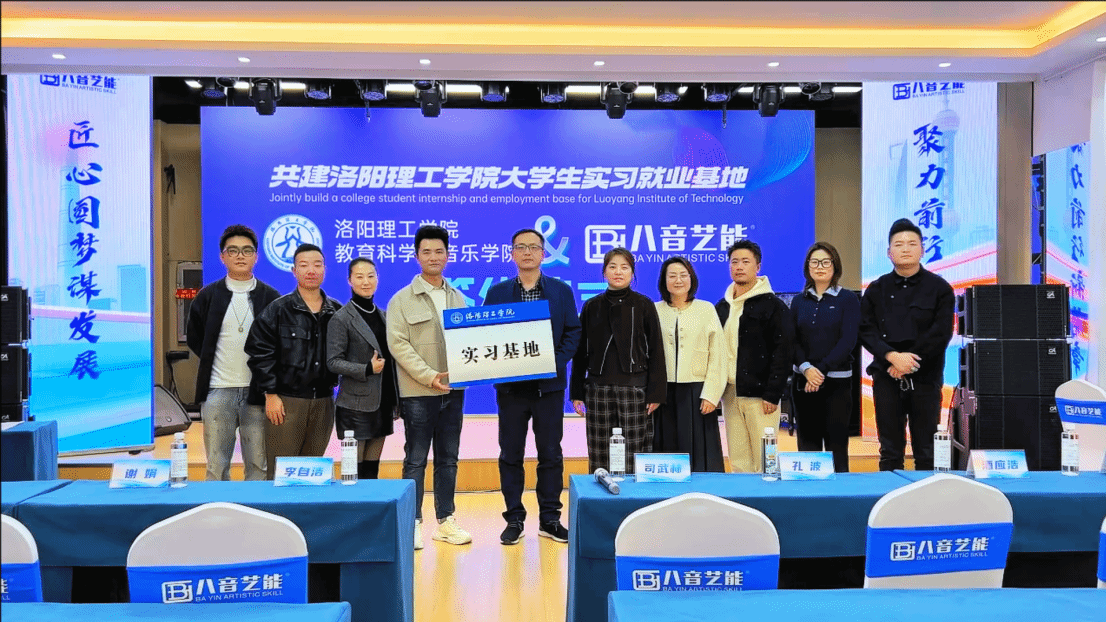 2025年11月12日,洛阳理工学院教育科学与音乐学院党委副书记谢娟、副院长李自浩、音乐系主任王艳及教师代表一行,赴八音艺能开展“访企拓岗”专项调研,并举行实习基地合作签约仪式。双方围绕艺术教育人才培养、毕业生就业拓展、校企协同育人等方面达成多项共识,共同探索“教学—实训—就业”一体化合作新模式。