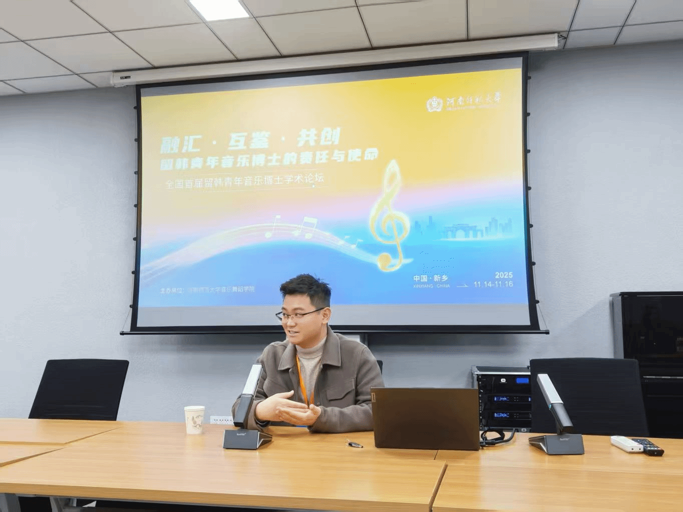 2025年11月14日-16日,“2025全国首届留韩青年音乐博士学术论坛”在河南师范大学音乐舞蹈学院成功举行 。我院留韩青年音乐博士刘帅、徐高瀚、余晓娜三位老师应邀参加。