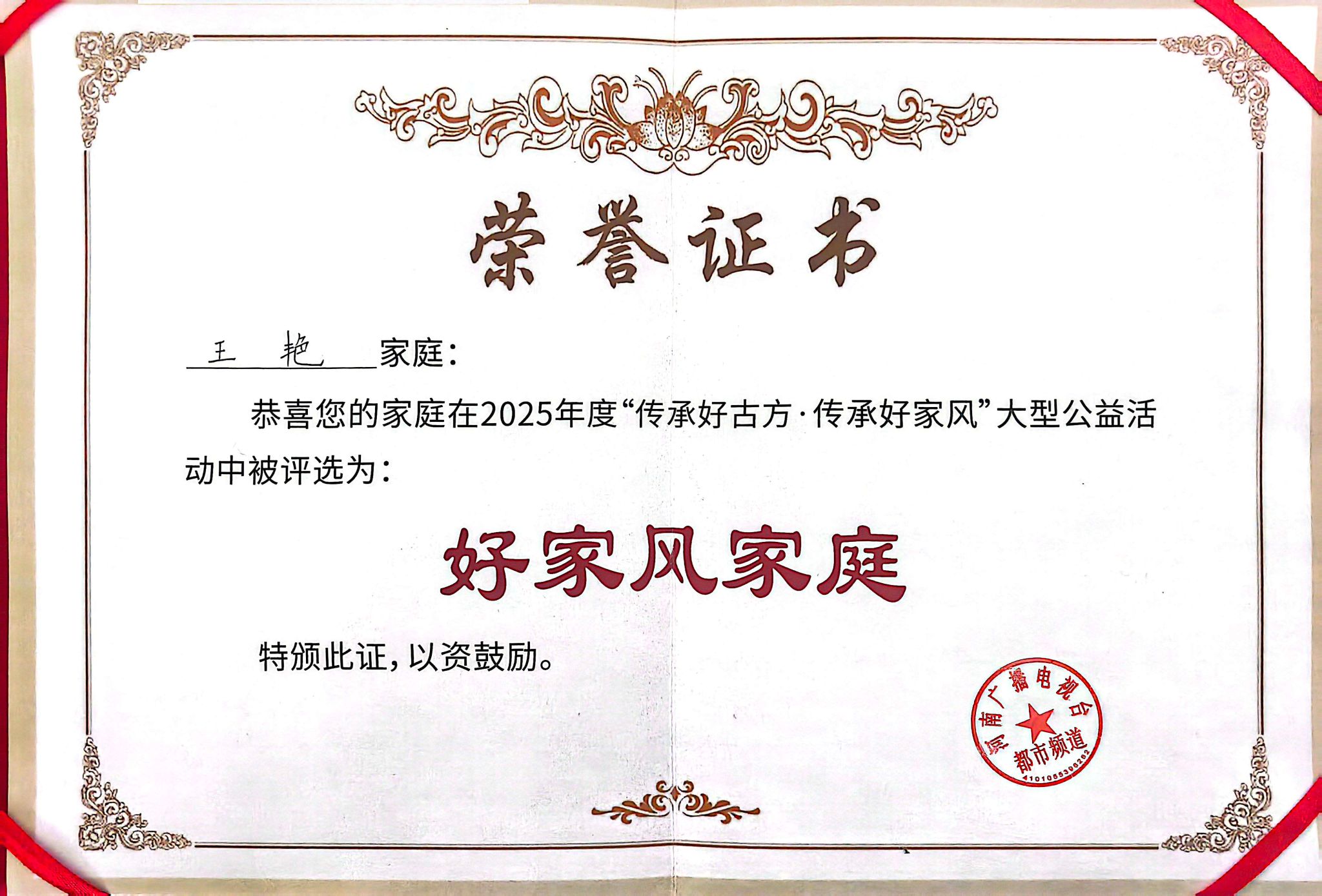 2025年11月22日,河南广播电视台都市频道《传承好古方传承好家风》8周年公益活动(洛阳站)在洛龙区宝龙广场启幕。我校教育科学与音乐学院副教授王艳作为洛阳市“最美家庭”“文明家庭”代表受邀出席,以家庭故事与教学实践诠释“家风育人、师德润心”的深刻内涵,其家庭更获“好家风家庭”荣誉称号,为学院师风建设再添亮色。