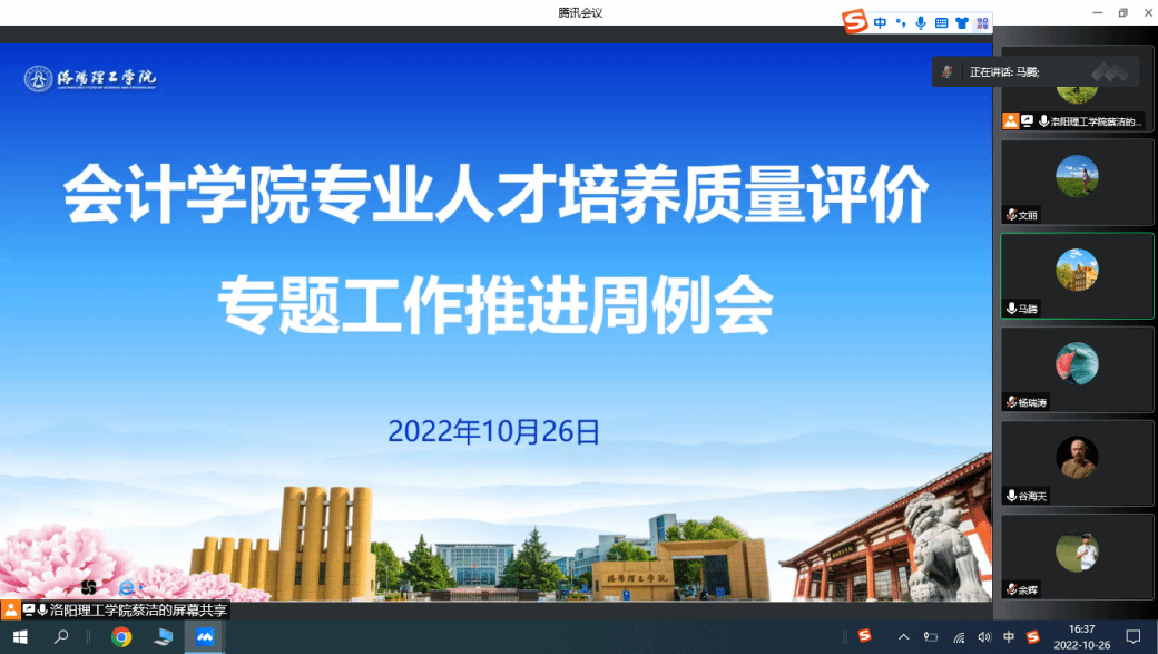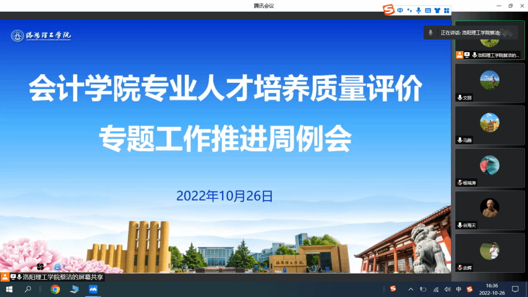 10月26日下午,会计学院通过腾讯会议召开专业人才培养质量评价专题工作推进会。会计学院院长马腾、副院长吕玉辉、蔡洁,系主任杨瑞涛、李玉玲、史东雨,系副主任于耀华、谷海天、刘蔚,教学秘书赵文丽参加了此次会议。会议由蔡洁主持。