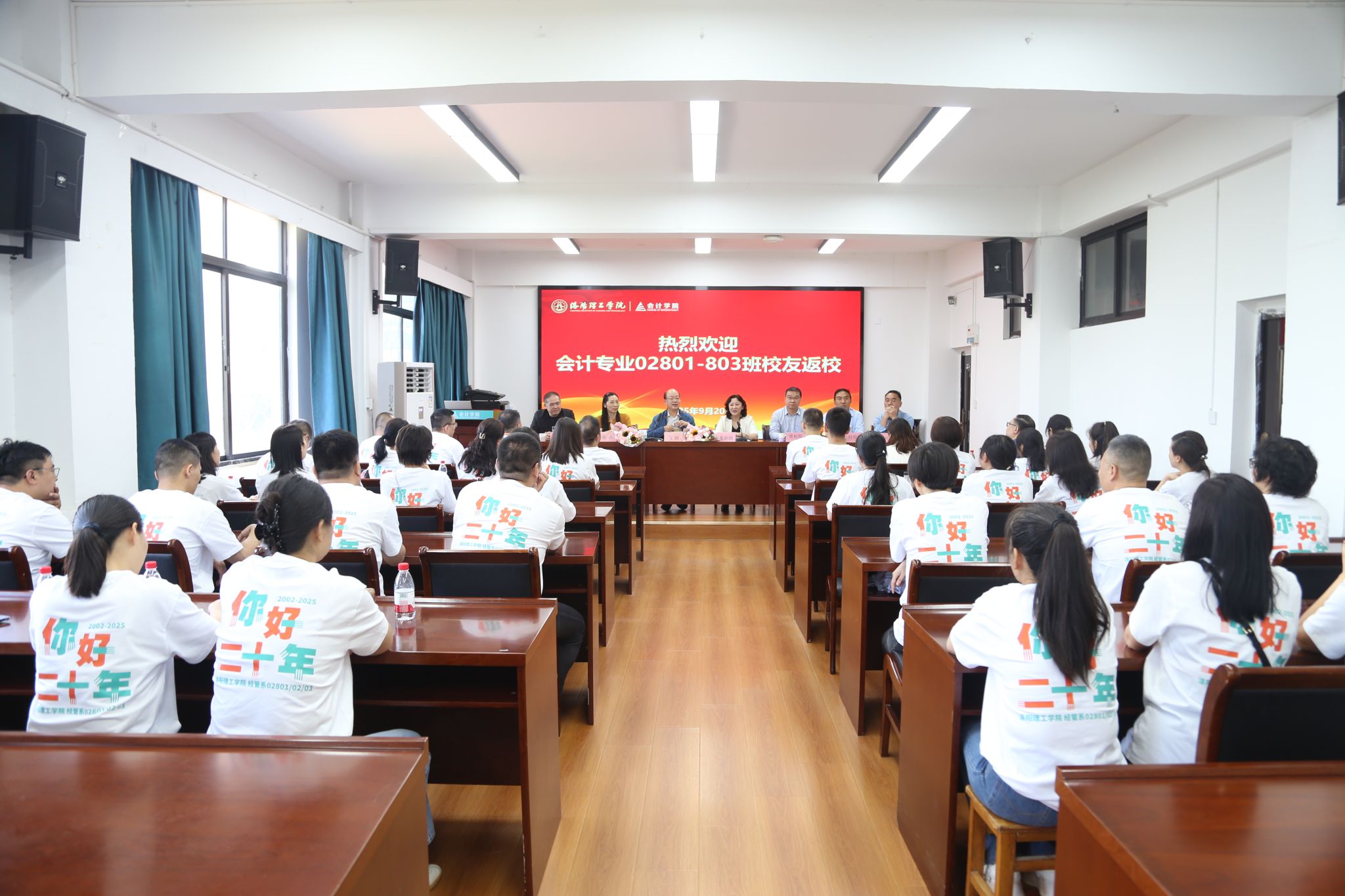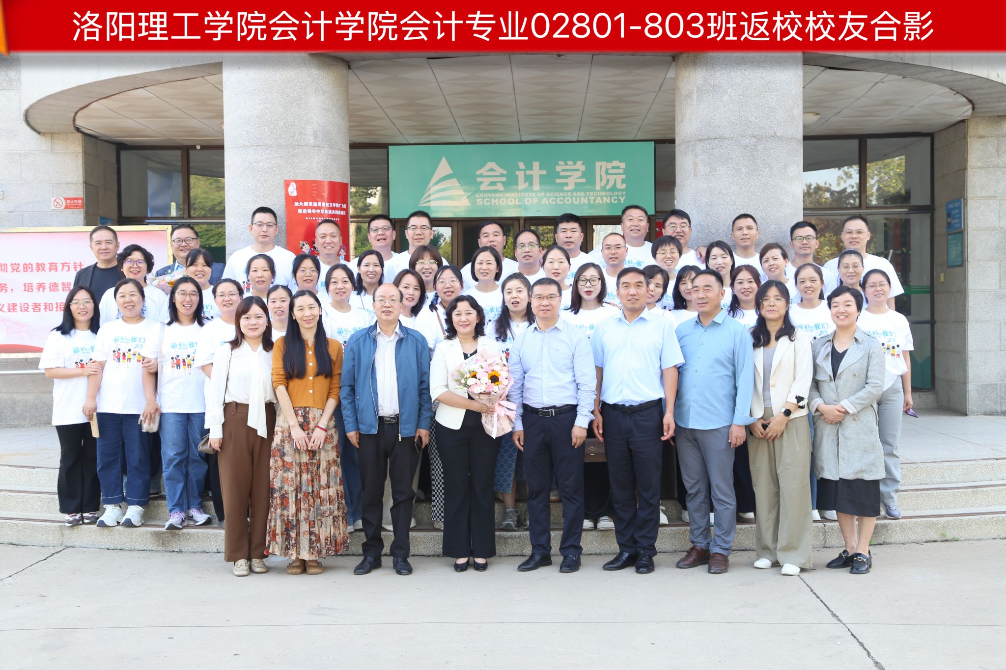 9月20日,洛阳理工学院校园里暖意融融,会计学院会计专业02801-803班的校友们带着对母校的思念与牵挂重返校园——阔别二十载,他们再度相聚,共忆青春时光。会计学院校友、时任洛阳工业高等专科学校经济管理系团总支书记、现任河南职业技术学院校长夏新颜,会计学院党委书记曹相智,院长马腾,党委副书记郭春林,校企合作工作处副处长、校友办公室副主任付俊强,副院长蔡洁、张国柱,时任辅导员王继晨老师,任课教师马翠荣老师,校企合作处校友服务科科长黄宇飞及四十多位校友一同出席活动。