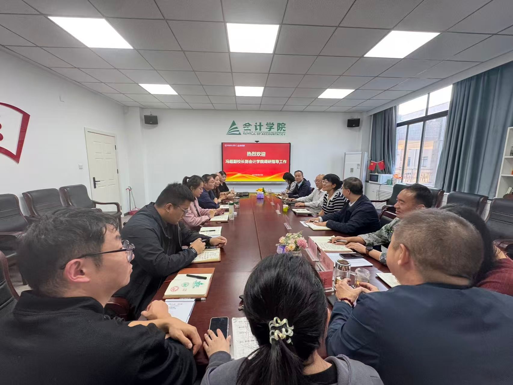 9月25日下午,副校长冯超到会计学院调研指导工作,通过座谈交流的形式,深入了解学院发展现状,为学科建设、人才培养及未来规划把脉定向。我院全体领导班子、各系室主任、科级以上干部参加调研座谈会。