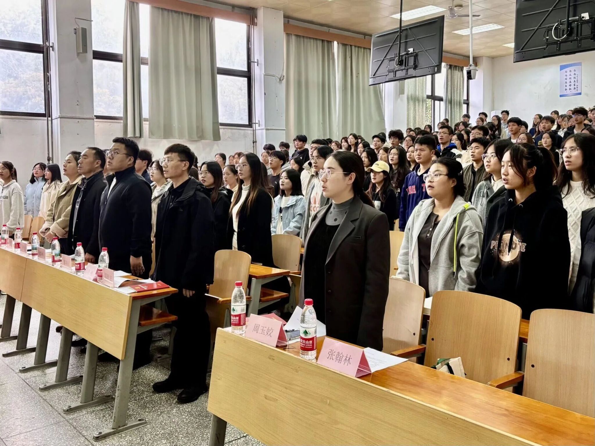 随后,主席团成员依次上台作自我介绍,结合自身丰富的工作经历,分享了在团委学生会的成长感悟,真挚的话语引发新干事强烈共鸣,为大家树立了鲜明榜样;两位新任职干事先后发言,表达了对未来投身学生工作、贡献青春力量的殷切期许。