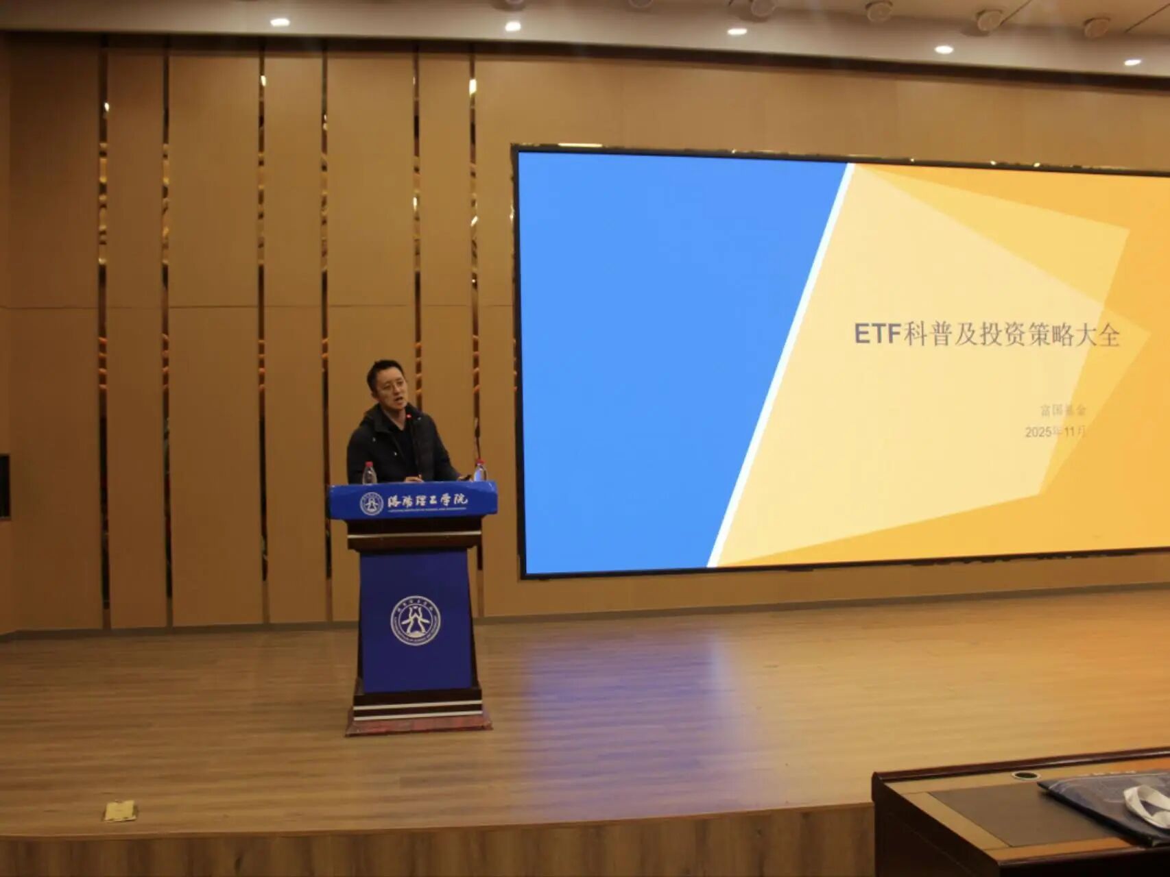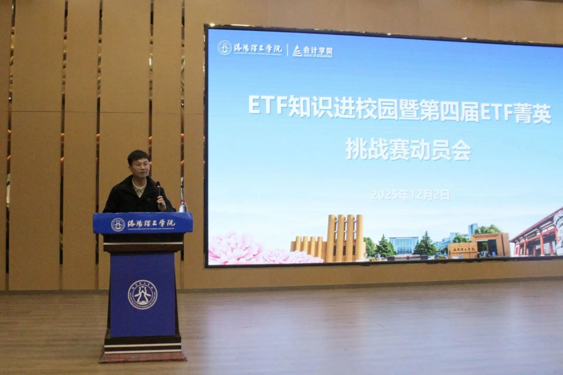 12月2日,洛阳理工学院会计学院于开元校区报告厅举办ETF专题宣讲会暨全国ETF菁英挑战赛动员会。活动由学院团委副书记温跃卫主持,会计学院副院长蔡洁、东方财富信息股份有限公司市场部华中区域负责人李思婷、深圳证券交易所基金管理部高级经理胡思原、富国基金量化投资部高级基金经理葛俊阳受邀出席动员会,与学子们共同探讨ETF市场前沿动态及赛事实践,此次活动既是ETF知识进百校专场活动,同时也是学校“科创嘉年华”活动会计学院特色科创赛事活动之一。