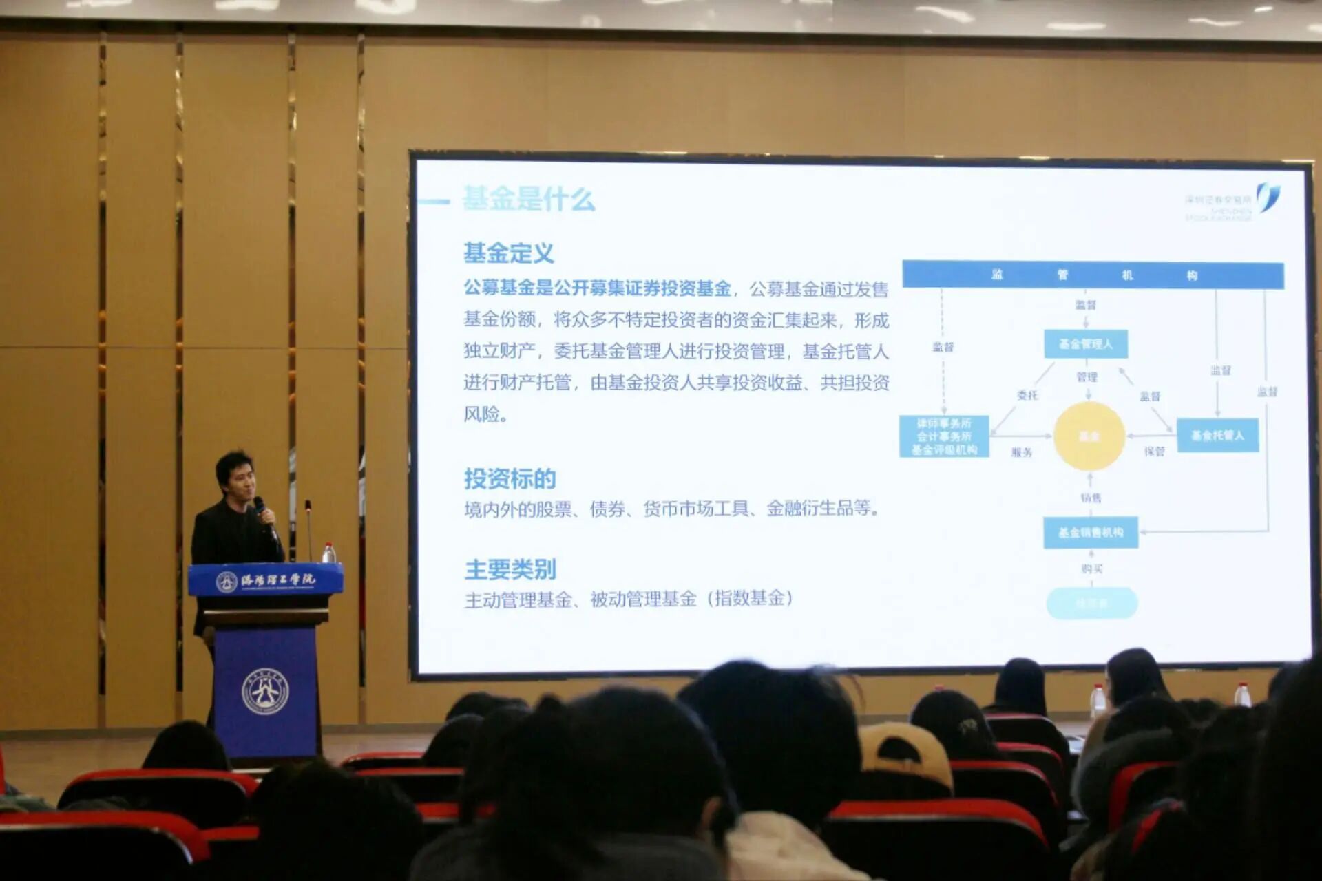 在此基础上,葛俊阳围绕“ETF的本质、特征与未来”进行了深入解读。他详细剖析了ETF的创设机制、交易特点与流动性管理,并指出ETF行业正迫切需要具备“金融+科技+数据”知识背景的复合型人才,引导同学们积极构建跨学科的知识体系。