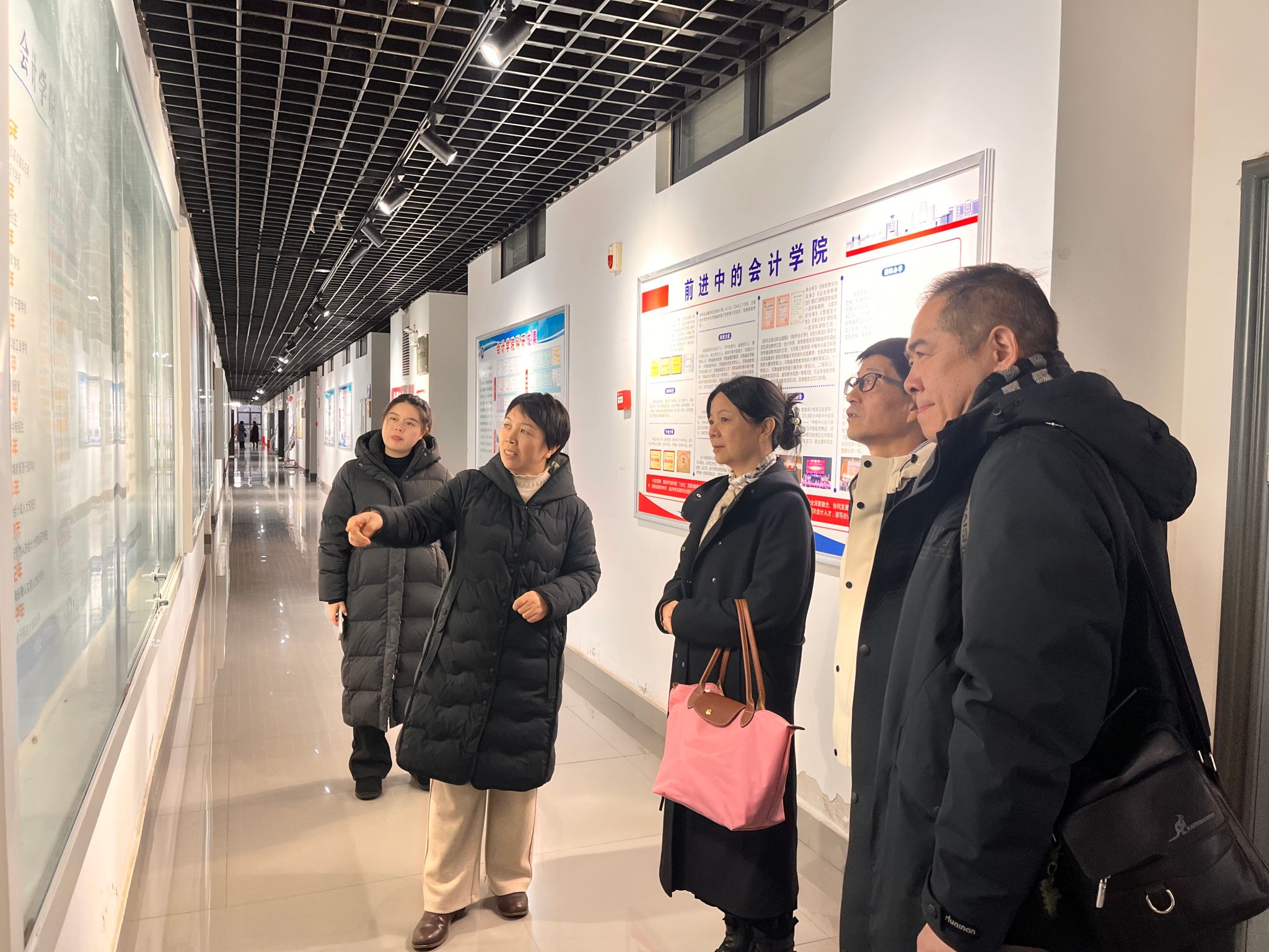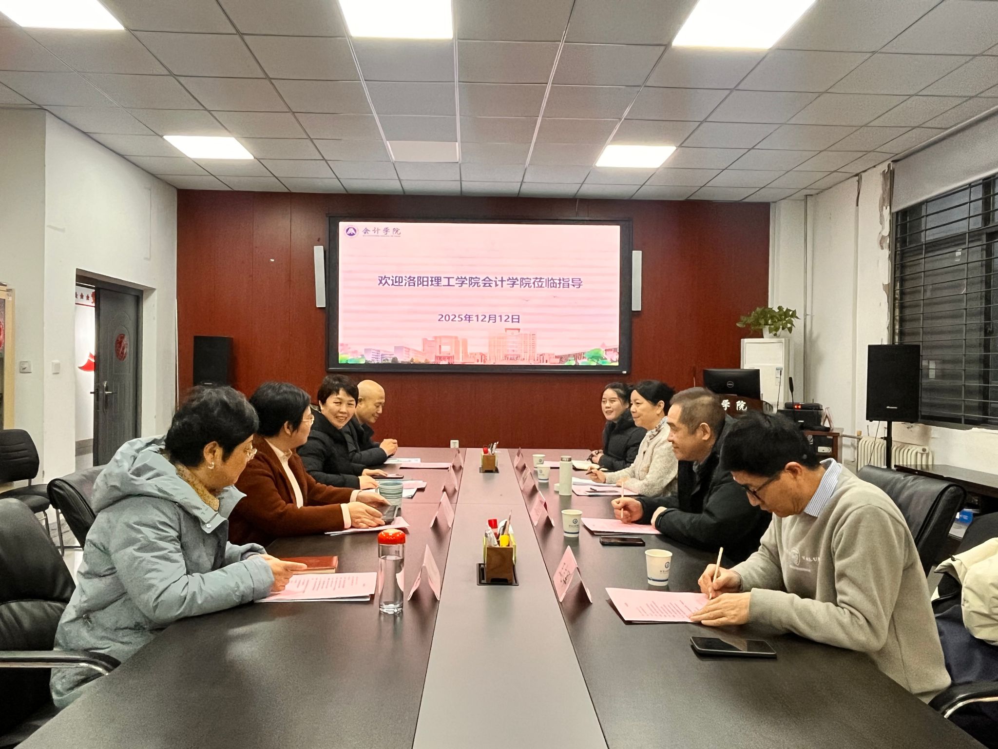 2025年12月12日,河南迎来今冬首场瑞雪,银装素裹中,洛阳理工学院会计学院副院长张自巧、张国柱一行踏雪赴约,前往河南工程学院会计学院开展学科建设专题调研交流活动。窗外雪花翩跹,窗内暖意融融,河南工程学院会计学院副院长刘根霞、何利及相关学科、实验室负责人热情接待了远道而来的调研组。在白雪映照的宁静氛围中,双方围绕学科发展、硕士点申报、科研创新等议题展开了热烈而深入的座谈,思想的火花在雪色映衬下格外明亮。
