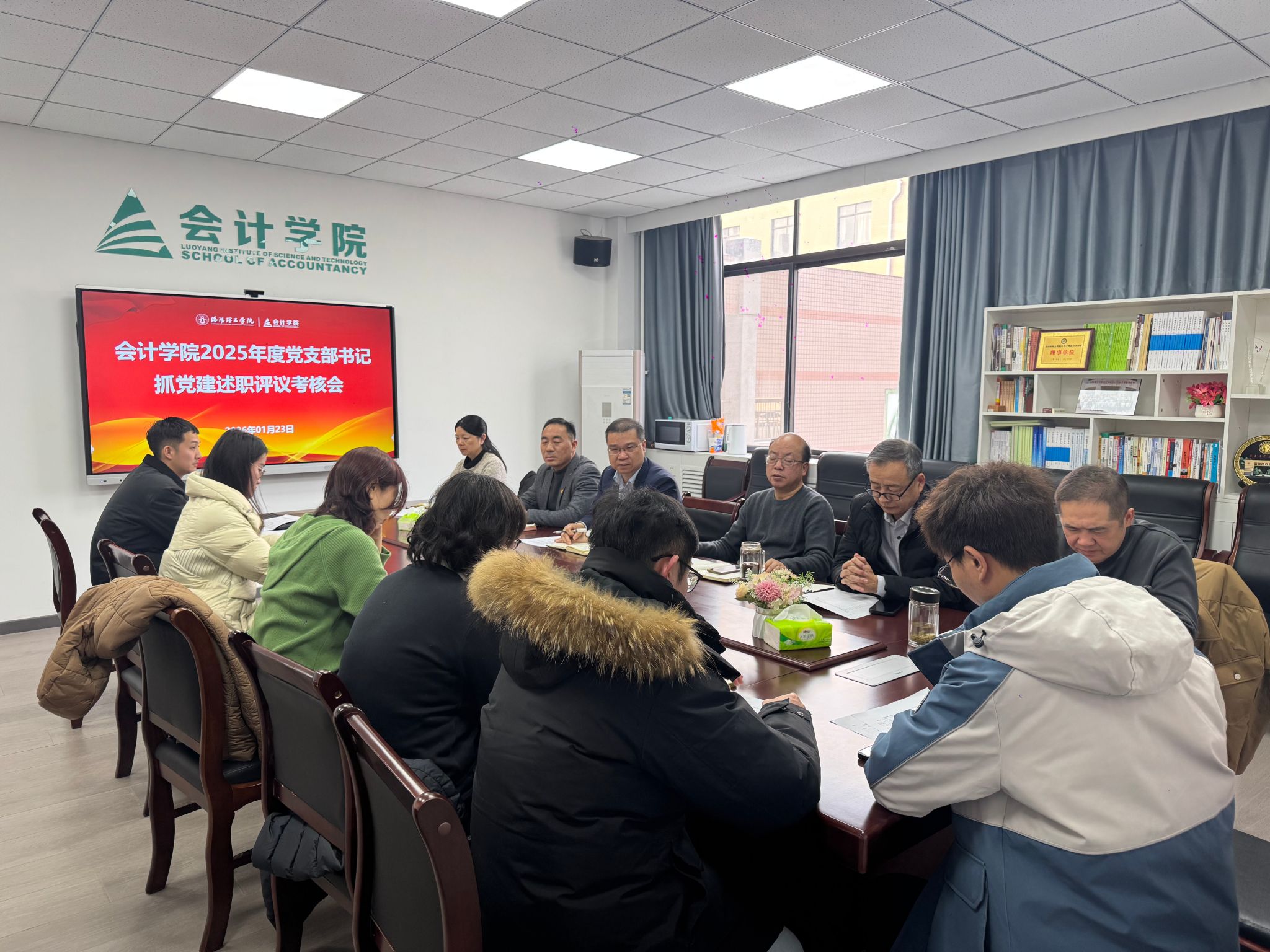为深入学习贯彻习近平新时代中国特色社会主义思想和党的二十届四中全会精神,强化基层党组织建设,提升党建工作质量,会计学院于1月23日在D309召开2025年度党支部书记抓党建述职评议考核会议。学院党委领导班子、各党支部书记参会,共同回顾年度党建工作成果,剖析问题,谋划未来发展方向,会议由学院党委副书记郭春林主持。