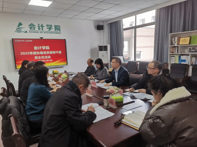 根据上级有关安排,1月23日会计学院在开元校区教学D楼302会议室召开2025年度处级党员领导干部民主生活会。深入学习贯彻习近平新时代中国特色社会主义思想和党的二十届四中全会精神,围绕落实中央八项规定精神,认真开展批评与自我批评。纪委副书记、纪委/监察专员办公室纪委监察室主任王莉、党委统战部副部长王凯到会指导。会计学院党委书记曹相智、院长马腾等会计学院全体领导班子成员参加会议。曹相智主持会议。