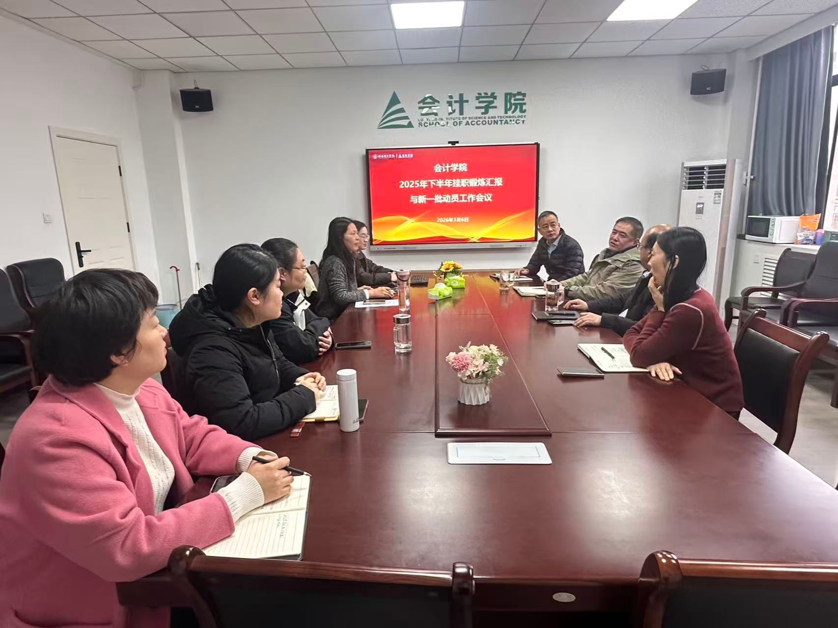 此次专题会议既是对学院 2025 年下半年挂职锻炼工作的全面总结,也是对 2026 年上半年挂职锻炼工作的系统部署,进一步明确了挂职锻炼的目标任务与工作要求。下一步,会计学院将以此次会议为契机,持续深化教师挂职锻炼工作机制,严格落实学校相关工作要求,不断提升教师实践能力和教学水平,为培养高素质应用型会计人才、推动学院各项事业高质量发展筑牢坚实基础。