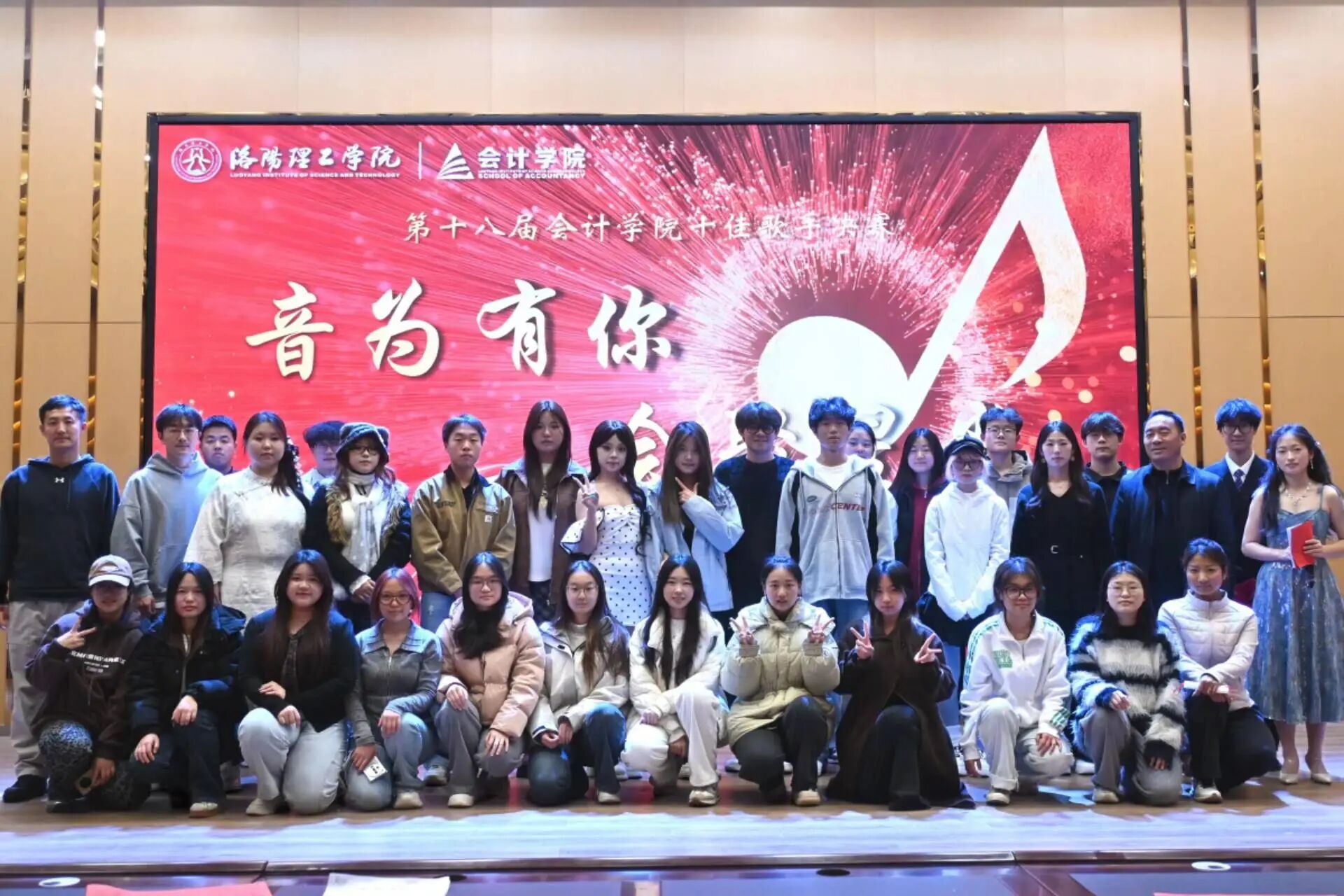 11月17日晚,洛阳理工学院西区报告厅星光熠熠,会计学院“音为有你,会聚星光”十佳歌手决赛热烈开唱。学院党委副书记郭春林,学工办主任李雷喆,心理健康教育办公室副主任赵天贺,辅导员张翰林、宋梦奇与数百名学子齐聚,共赴这场青春视听盛宴。
