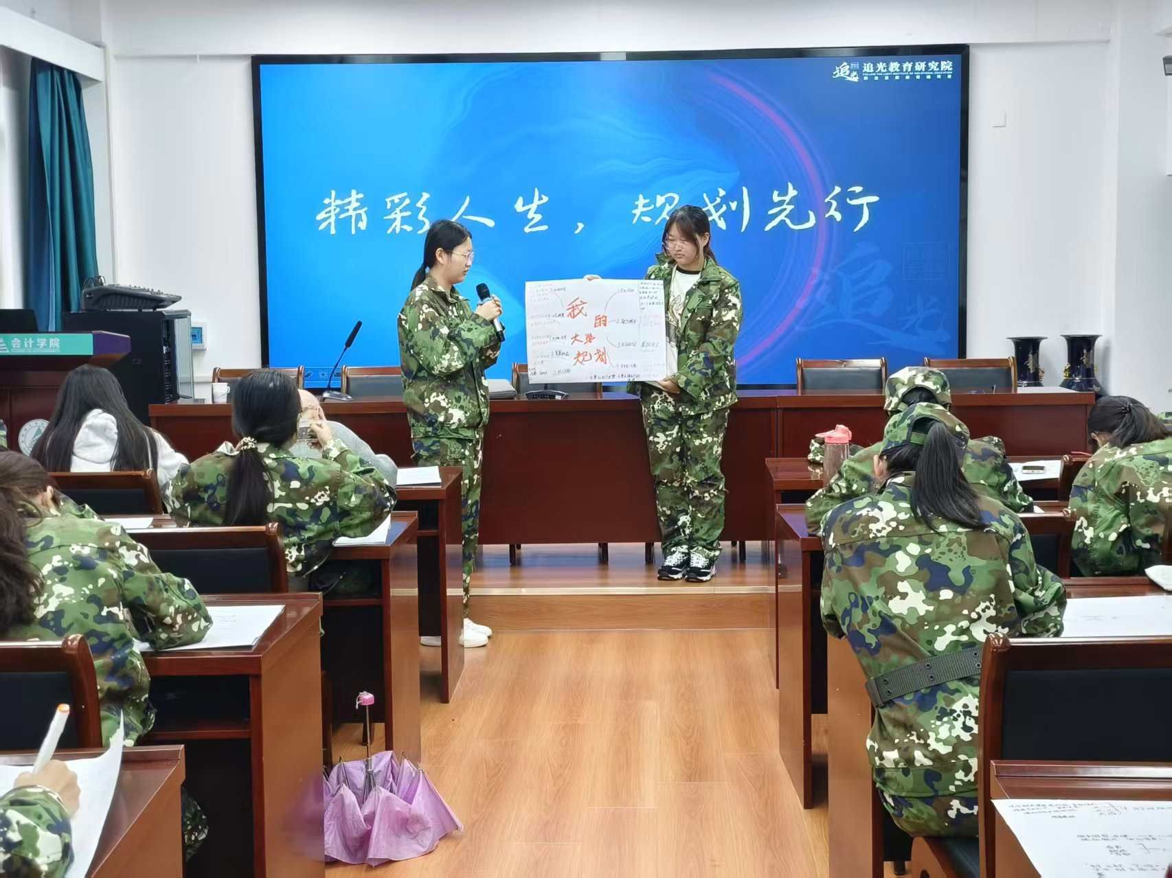 在互动环节,同学们动手绘制“我的大学规划”思维导图,从学业目标、能力提升、实习规划、竞赛挑战等多个维度构建个人发展蓝图。多位同学主动上台分享自己的规划,展现出2025级新生清晰的自我认知与积极的成长意愿。