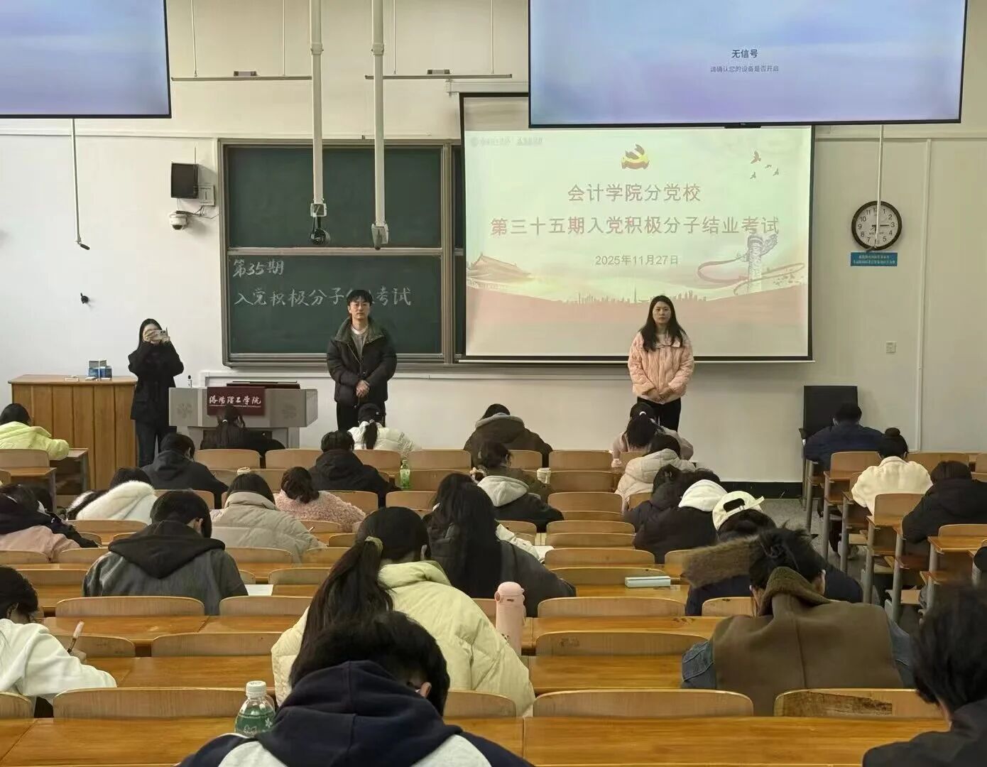 为严格把好党员发展“入关口”,精准检验发展对象和积极分子的政治理论素养与思想觉悟水平。2025年11月27日,会计学院分党校在学校党校的统一安排和部署下,同步组织开展第二十二期党员发展对象、第三十五期入党积极分子结业考试。全体学员全程参与,考试规范有序、圆满完成。