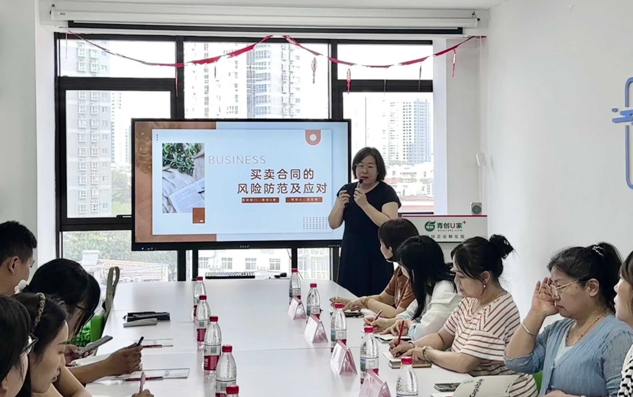 2025年8月21日下午,我院司吉梅老师受青创U家邀请,为众创空间内外众多企业代表破解合同管理难题。青创U家作为我院数智化财务产业学院的共建企业,始终致力于推动产学研深度融合,助力中小企业高质量发展。此次“博士领航 法税同行”企业合规分享会,是青创U家聚焦企业经营实务痛点,依托企业孵化服务资源,联合相关单位开展的专题培训活动,为企业搭建起学习合同风险防范知识的专业平台。