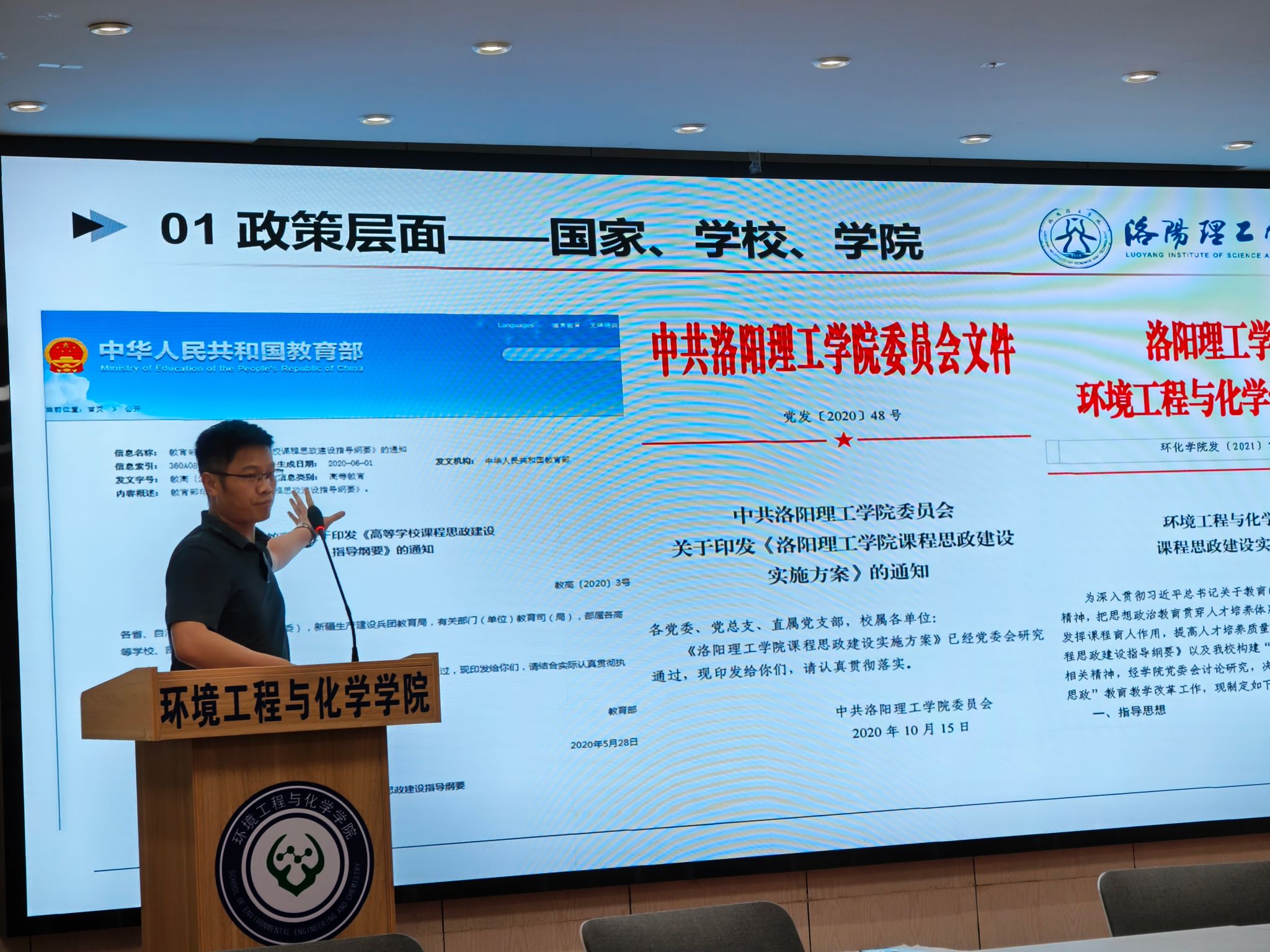 为全面落实立德树人根本任务,深入推进学院课程思政建设工作,落实整改学院教育教学审核评估中存在的问题,切实提高课堂教育教学质量,6月27日下午,学院在DE304会议室举办“OBE理念下课程思政融合创新”培训会,学院领导班子成员及专业教师70余人参加了会议。学院国家一流本科课程建设项目主持人尹国杰副教授作为主讲人开展培训。