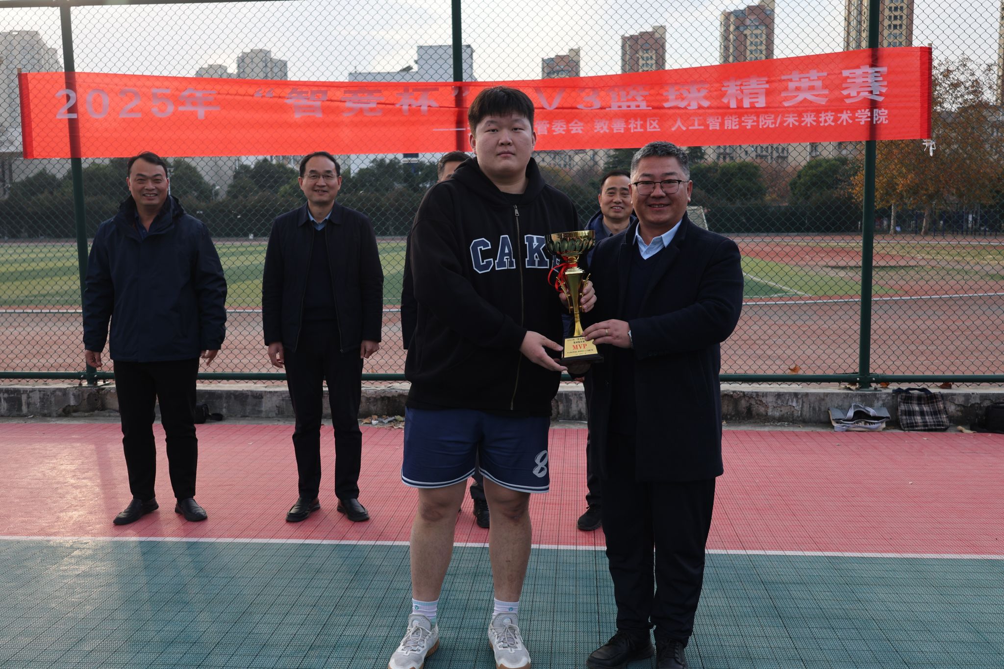 赛事启动以来,吸引了来自人工智能学院/未来技术学院各班级的23支队伍踊跃报名。经过小组赛、淘汰赛的激烈角逐,B230222班篮球队获得总冠军,来政朴同学获得“MVP球员”称号。