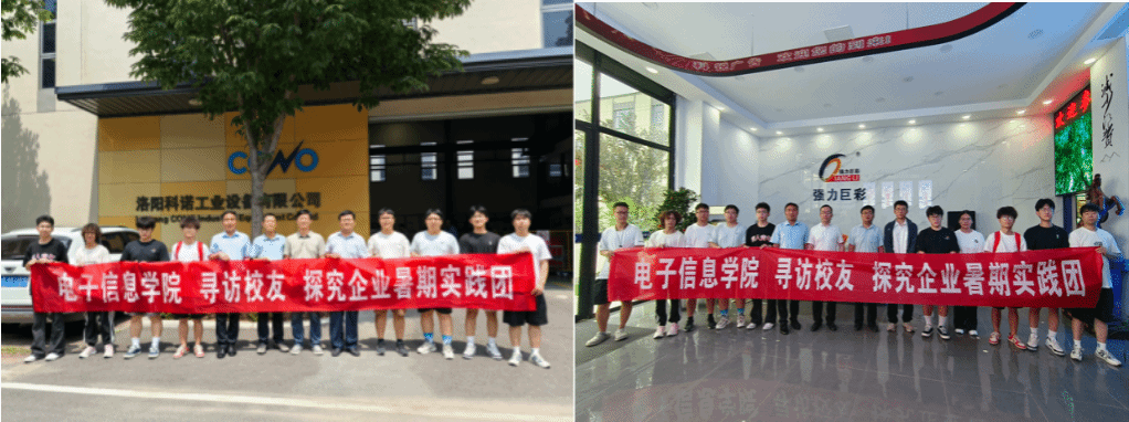 为帮助学生明晰行业动态、精准把握人才需求、深入了解岗位技能要求,积极拓展校企合作空间,7月16日,电子信息学院开展了“寻访校友、探究行业”暑期主题实践活动,先后走访了河南科锐广告工程有限公司与洛阳科诺工业设备有限公司两家校友企业。电子信息学院党委书记杨涛、校企合作工作处副处长兼校友办公室副主任付俊强及电子信息学院就业指导办公室副主任张拓带领学生代表参与活动。