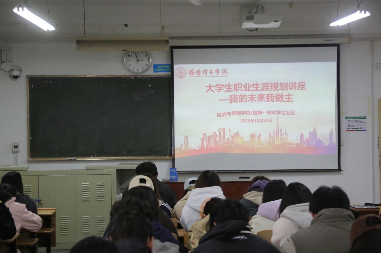为帮助2025级新生明确职业发展方向,实现自我理想和价值,2025年10月23日,致知社区经济与管理学院成功举办了以“我的未来我做主”为主题的大学生职业生涯规划讲座。