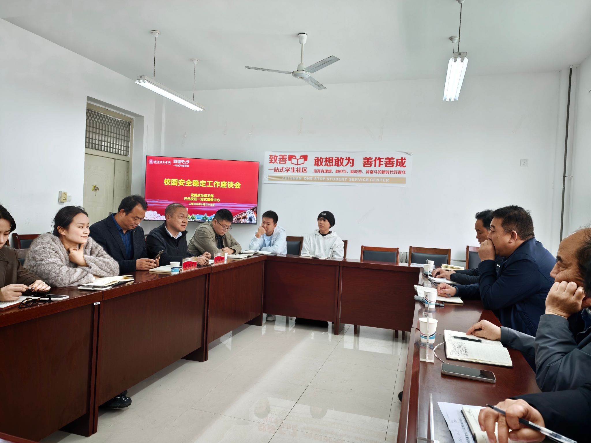 为筑牢校园安全防线,推进平安社区建设,10月29日,开元校区一站式学生社区联合校政治保卫部,在致善社区召开安全稳定工作座谈会。党委政治保卫部班子成员、开元校区一站式学生社区负责人、致善社区各学院党委副书记及辅导员参加了会议。
