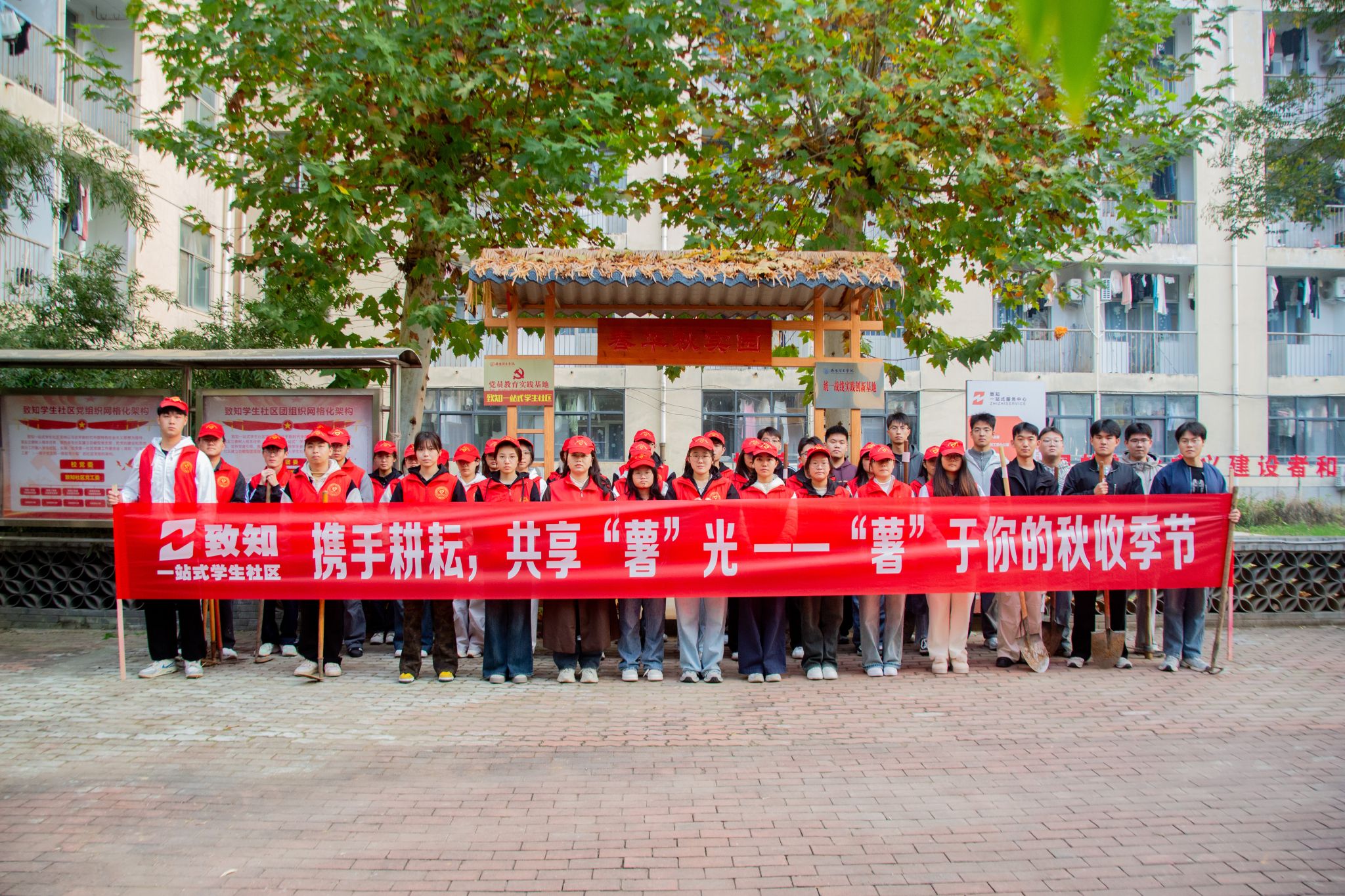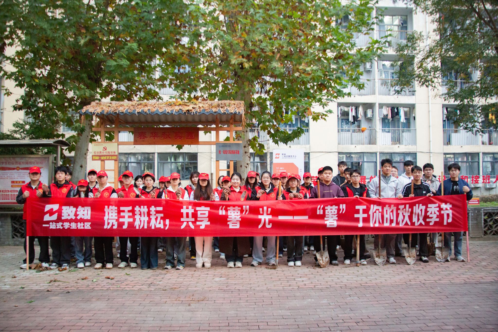 为全面贯彻落实新时代党的教育方针,贯彻落实“五育并举”育人理念,教育引导广大学生崇尚劳动、尊重劳动、学会劳动,11月4日致知社区开展携手耕耘,共享“薯”光——“薯”于你的秋收季节劳动实践活动。