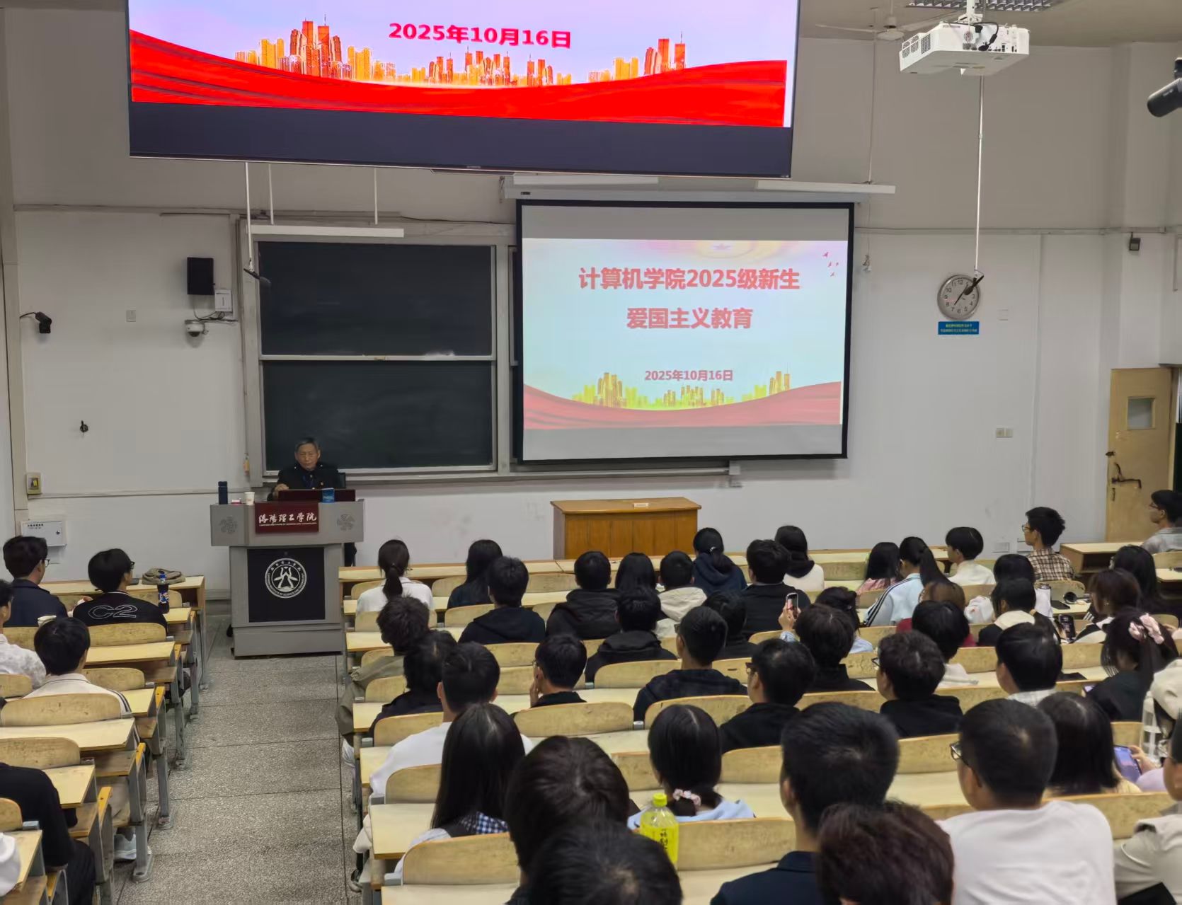 为弘扬爱国主义精神,激发青年学子的使命担当与家国情怀,10月16日晚,致能社区计算机学院在开元校区XC1教室开展爱国主义教育活动,邀请我校关工委爱国主义教育团团长李亚非老师给2025级新生做报告。学工办副主任吴程浩以及2025级新生代表参加报告会。
