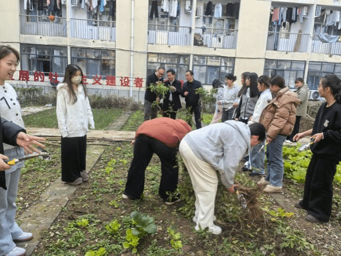 首先,大家一起围绕实践育人工作开展深度座谈。社区负责人周志平详细介绍了劳动教育实践基地的规划建设、功能布局及运营成效,重点分享了基地与学院在志愿服务、课程实践、文化共建等方面的合作成果。郭强部长对社区助力学生成长成才的成效表达高度认可,并表示统战部将积极搭建桥梁纽带,推动部门各方资源与社区需求精准对接,助力社区筑牢实践育人重要阵地,推进职能部门、社区、学院三方深度协同,凝聚合力、优势互补,以劳动教育基地为载体,通过实践锤炼学生劳动品格与综合素养,以青春力量赋能社区发展,共同打造特色鲜明、成效显著的实践育人品牌项目,实现多方共赢共促的良好局面。随后,大家一同进入社区劳动教育实践基地,分工协作、松土除草、浇水拾杂,现场氛围热烈。
