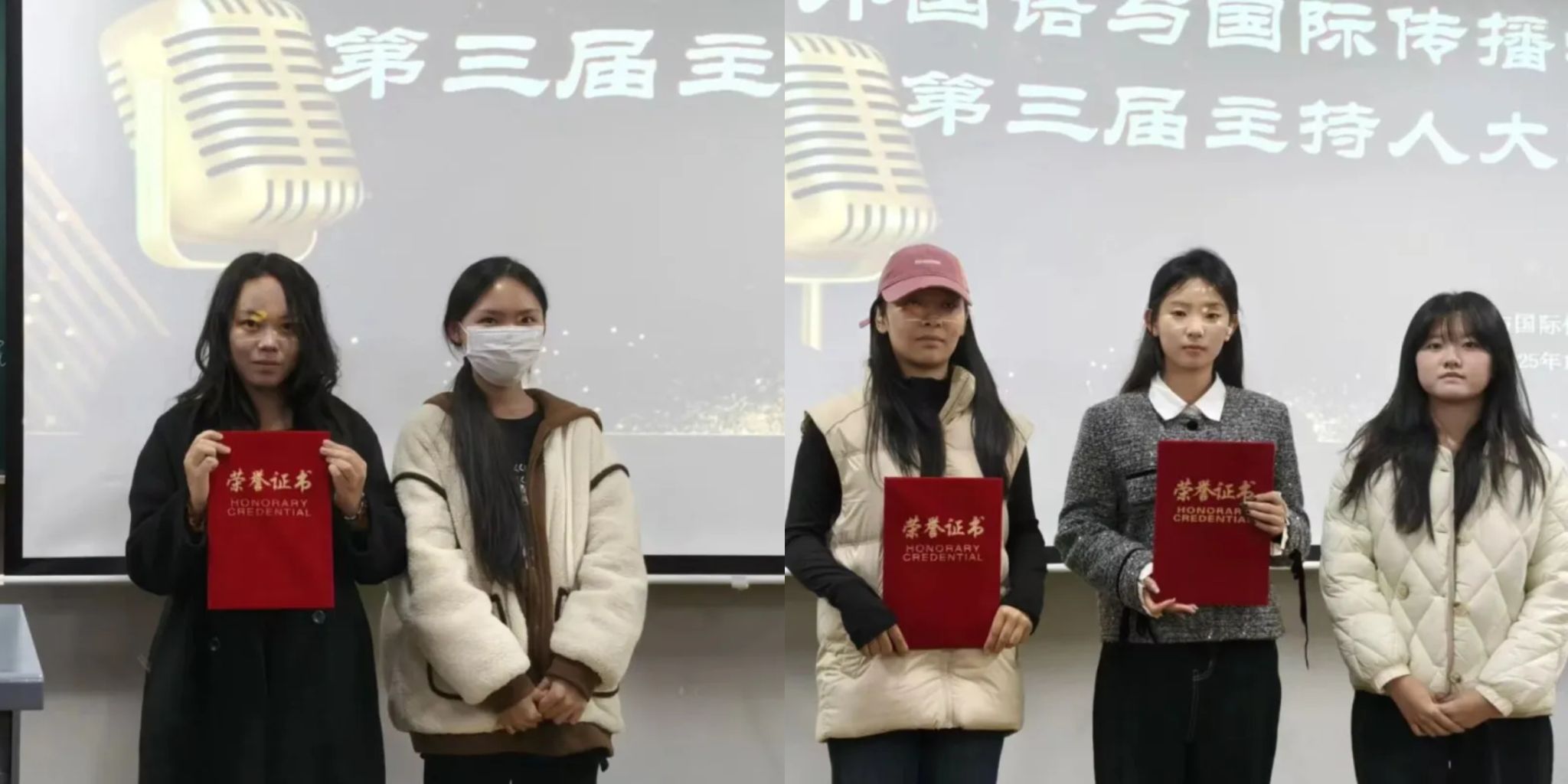 经过激烈角逐,本次主持人大赛获奖名单如下:一等奖获得者为王怡茹同学;二等奖获得者为刘艺暄、索庆茹同学;三等奖获得者为黄晓雪、潘星颐、刘星瑶同学。