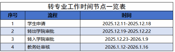 5.各学院需在2025年12月15日前将本学院转专业方案报送教务处学籍科,待审核后开始后续工作。