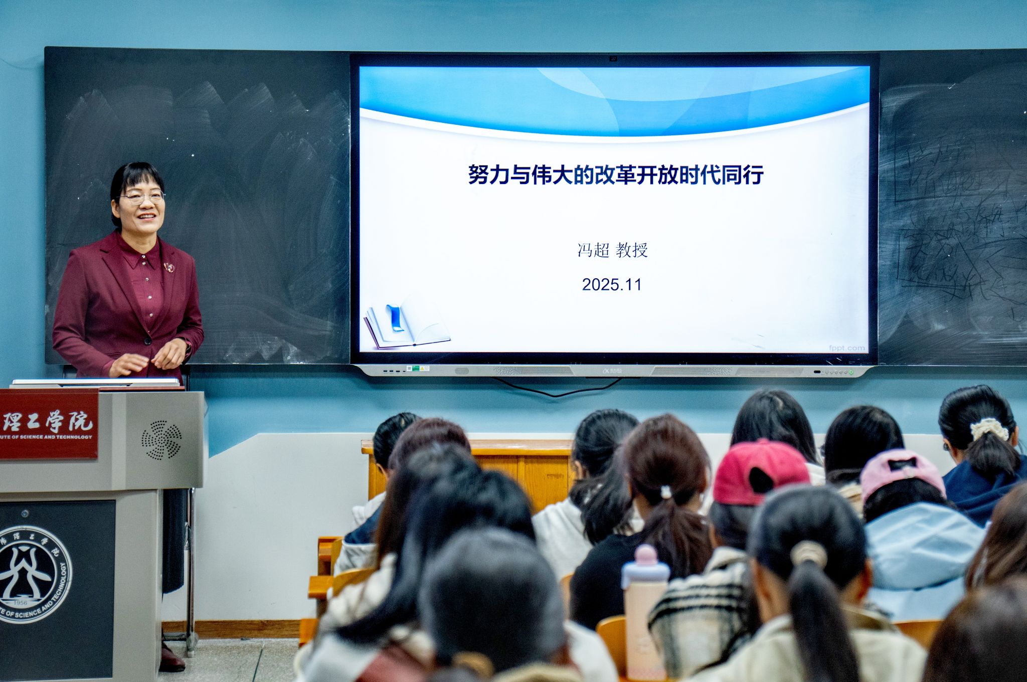 11月6日,副校长冯超走进致知社区经济与管理学院2025级学生课堂,以《努力与伟大的改革开放时代同行》为题,讲授了一堂兼具思想高度与实践温度的形势政策报告课。
