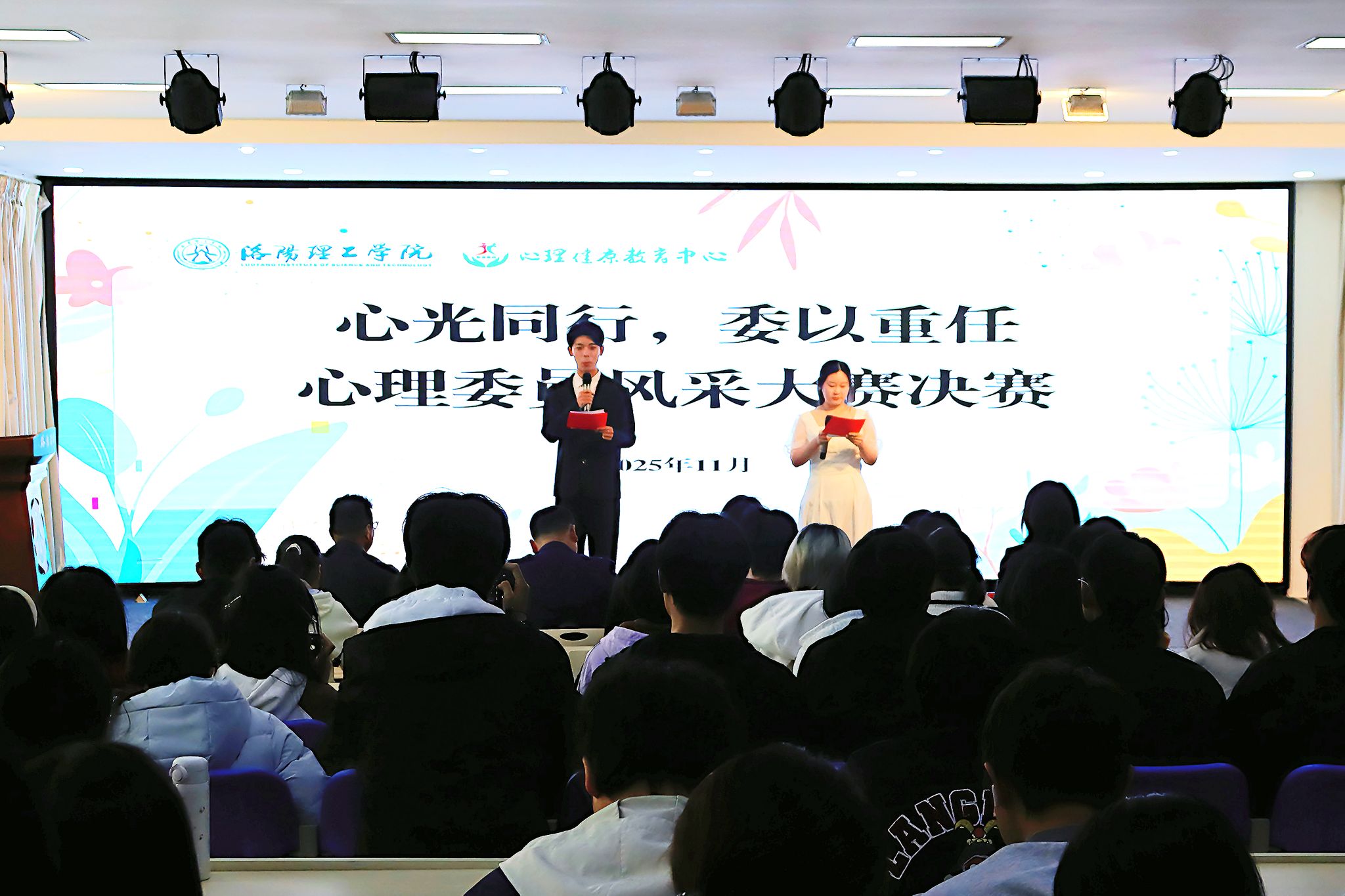 本届心理委员风采大赛分初赛和决赛两个环节。经过二级学院初赛,16名心理委员进入决赛环节。决赛现场设置“自我介绍与工作展示”“心理主题知识宣讲”“情景模拟”三个模块,全面考察选手的专业素养、应变能力与实践技巧。比赛过程紧张激烈、精彩纷呈,16位选手的精彩表现赢得现场阵阵掌声。经过激烈角逐,人文学院黄亚涵、经济与管理学院李诗雨、智能制造学院张家硕、会计学院马星如、生命科学与健康工程学院赵青怡、计算机学院/软件学院杨子烨、人工智能学院/未来技术学院李涵睿、材料科学与工程学院翟钰坤、外国语与国际传播学院刘瑞晗、教育科学与音乐学院吕佳芮获得洛阳理工学院2025年“十佳心理委员”荣誉称号;电子信息学院马晓薇、电力电气工程学院陈思蕊、智能建造与土木工程学院韦雨辰、能源与化工学院陈一涵、艺术设计与服装学院周紫怡、智能车辆工程学院张靖瑶获得“优秀心理委员”荣誉称号。