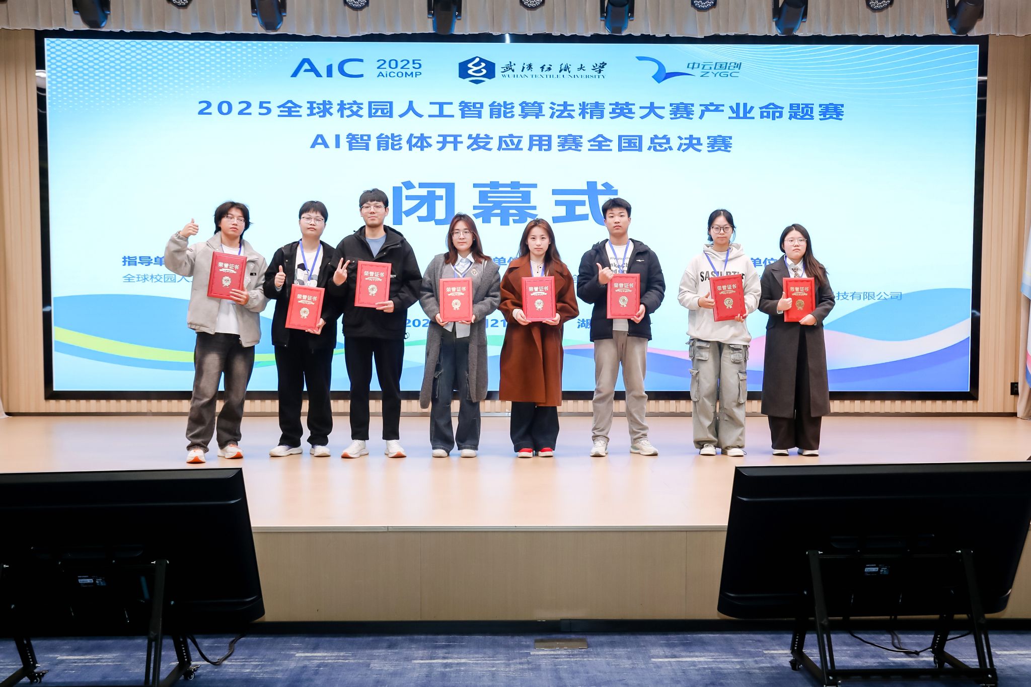 11月23日,2025全球校园人工智能算法精英大赛产业命题赛AI智能体开发应用赛全国总决赛在武汉纺织大学落幕。该项总决赛吸引了来自全国各大高校的318支精英队伍、共计854名优秀学子同台竞技。比赛围绕AI智能体架构设计、AI知识库搭建、AI智能体搭建、AI应用测试等模块设置赛题,全面考察参赛者的技术功底、创新思维与实战能力,竞争异常激烈。我校学子在激烈角逐中脱颖而出,凭借扎实的专业知识素养、卓越的算法设计能力和出色的团队协作精神,一举斩获全国一等奖1项、二等奖1项、三等奖2项。