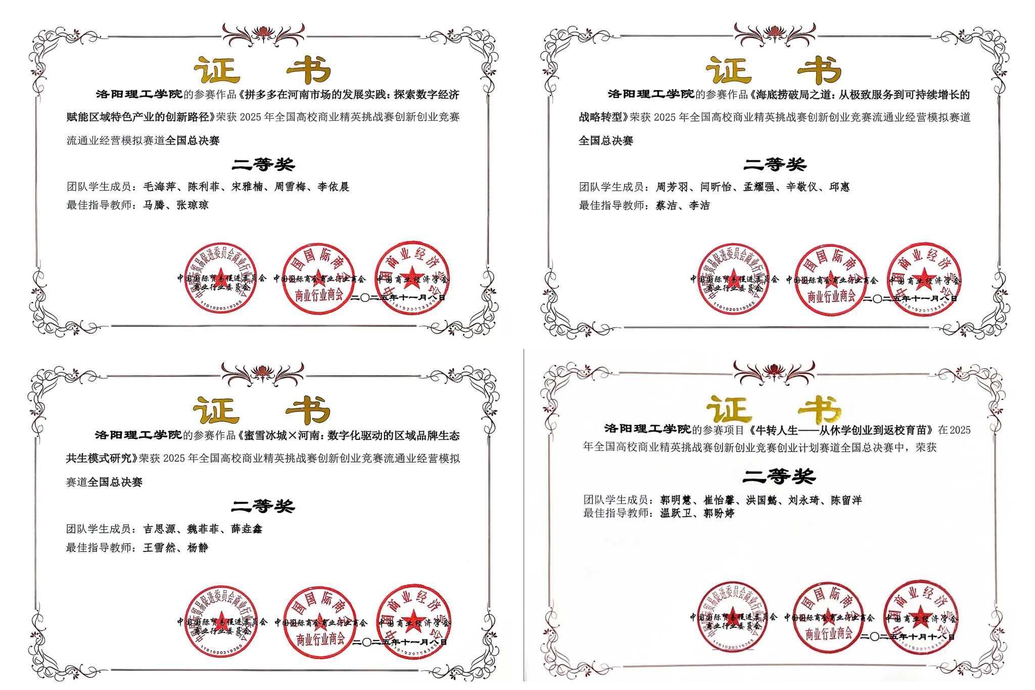 近日,由中国国际贸易促进委员会商业行业委员会、中国国际商会商业行业商会、中国商业会计学会、中国商业经济学会联合主办的2025年全国高校商业精英挑战赛创新创业竞赛流通业经营模拟赛道全国总决赛落下帷幕。我校会计学院遴选报送的四支学生团队,在马腾、蔡洁、温跃卫、王雪然等八位教师的系统指导下,均荣获全国总决赛二等奖。