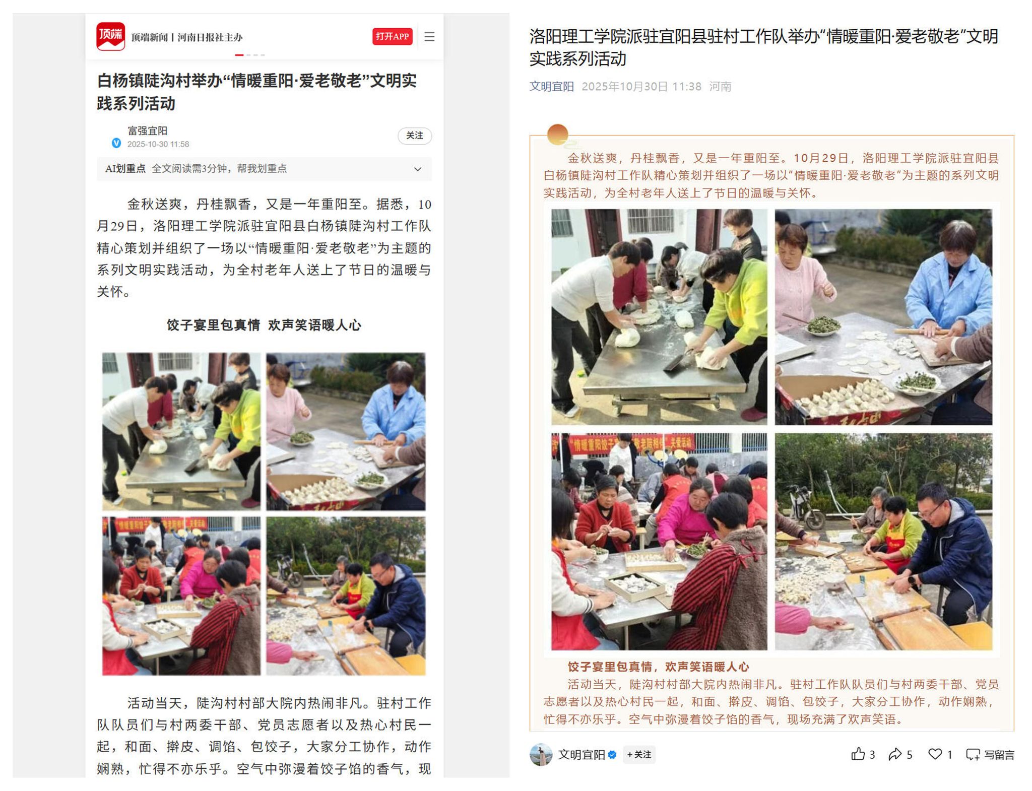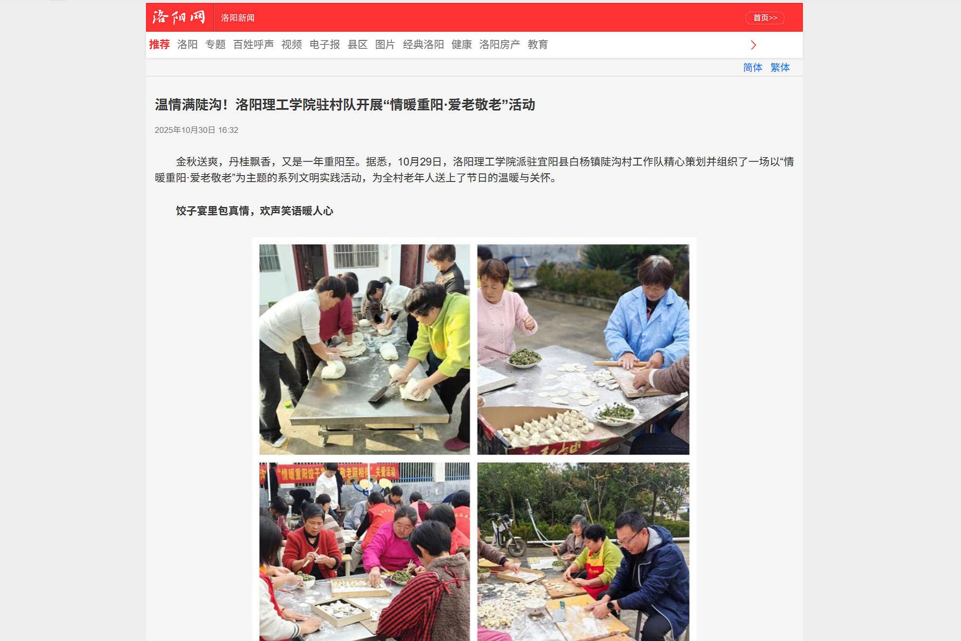 2.洛阳网,2025年10月30日,《温情满陡沟!洛阳理工学院驻村队开展“情暖重阳·爱老敬老”活动》