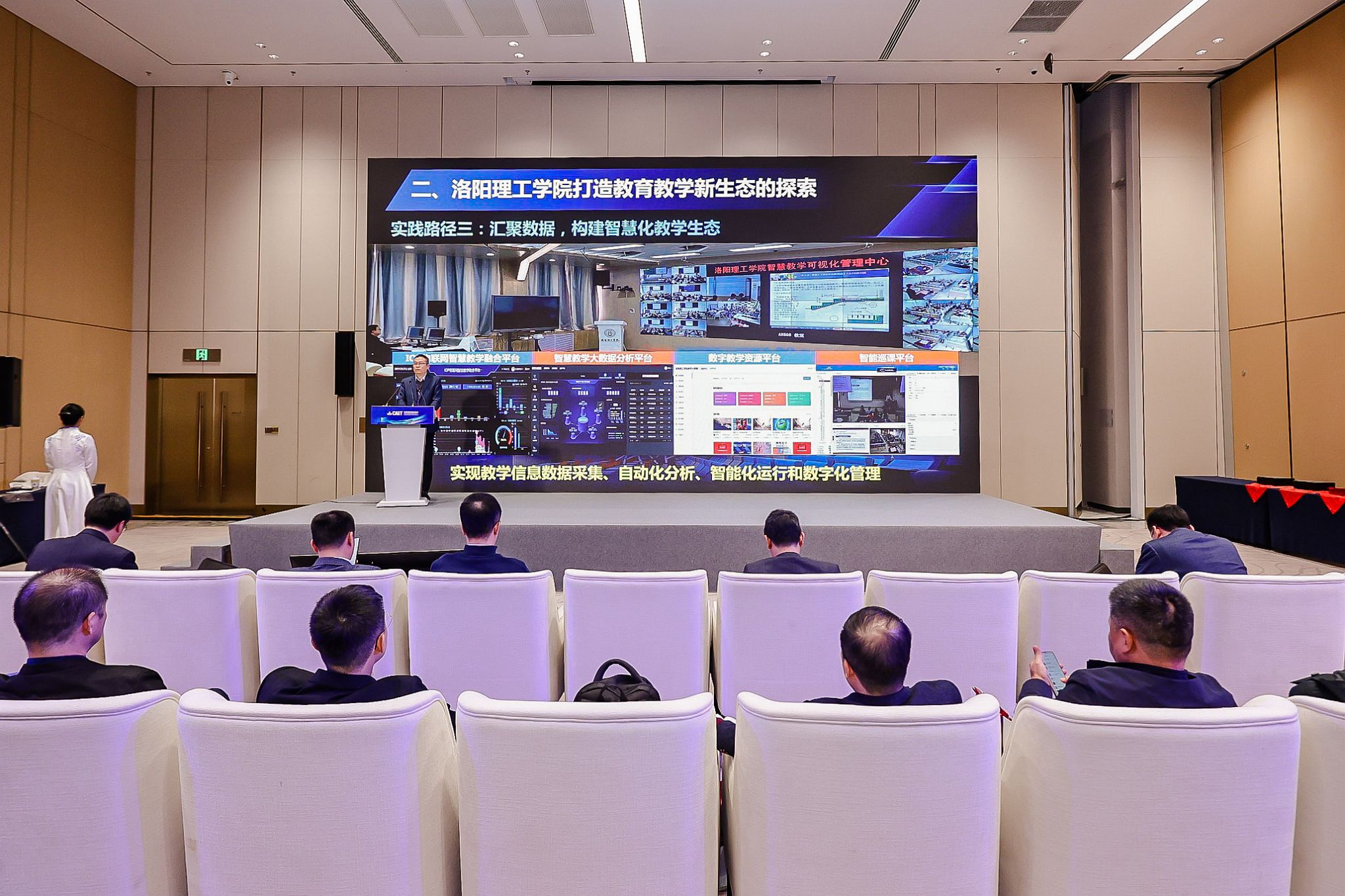 李传锋在报告中介绍了我校的办学定位,以“从有到优”为目标,通过AI赋能构建数据驱动的智慧教育新生态,系统推进数字治理、平台建设与教学融合,实现从基础设施到育人模式的全方位升级。他重点分享了我校六大实践路径:一是革新机制,通过构建“1+2+N”多元治理主体和推行CIO制度,优化教育数字治理体系;二是拓宽渠道,汇聚社会资源,为数字化转型提供可持续动力;三是汇聚数据,构建“基座支撑、能力培养、效能辐射”的智慧教学生态,实现从“统一教”到“个性学”的转变;四是提升师生数字素养,在多项国家级高水平竞赛中实现突破;五是强化治理,以“五个必须”工程和数据驾驶舱为抓手,实现精准化、透明化管理;六是数据赋能,打造“一句话办事”校务服务和全景支付一校通平台,极大提升了师生的幸福感和舒适度。