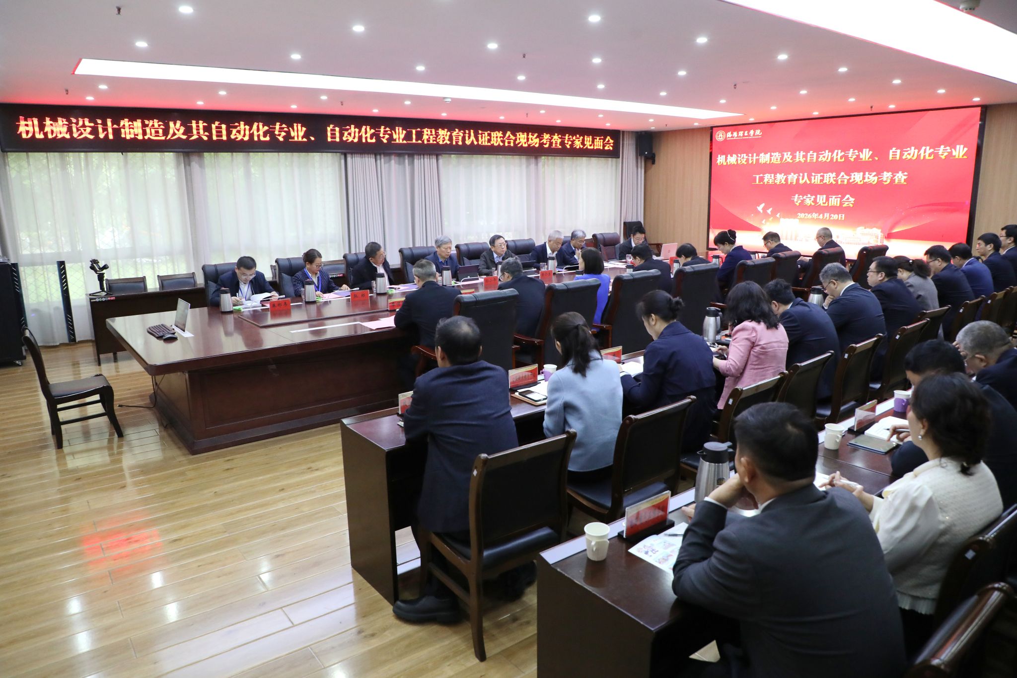 黄介生说明了考查目的与工作要求。联合专家组分别听取了机械设计制造及其自动化专业和自动化专业负责人作专业补充汇报的自评报告补充汇报,并围绕工程教育认证保障机制、专业教师工程实践能力培养、持续改进等问题,进行现场求证。