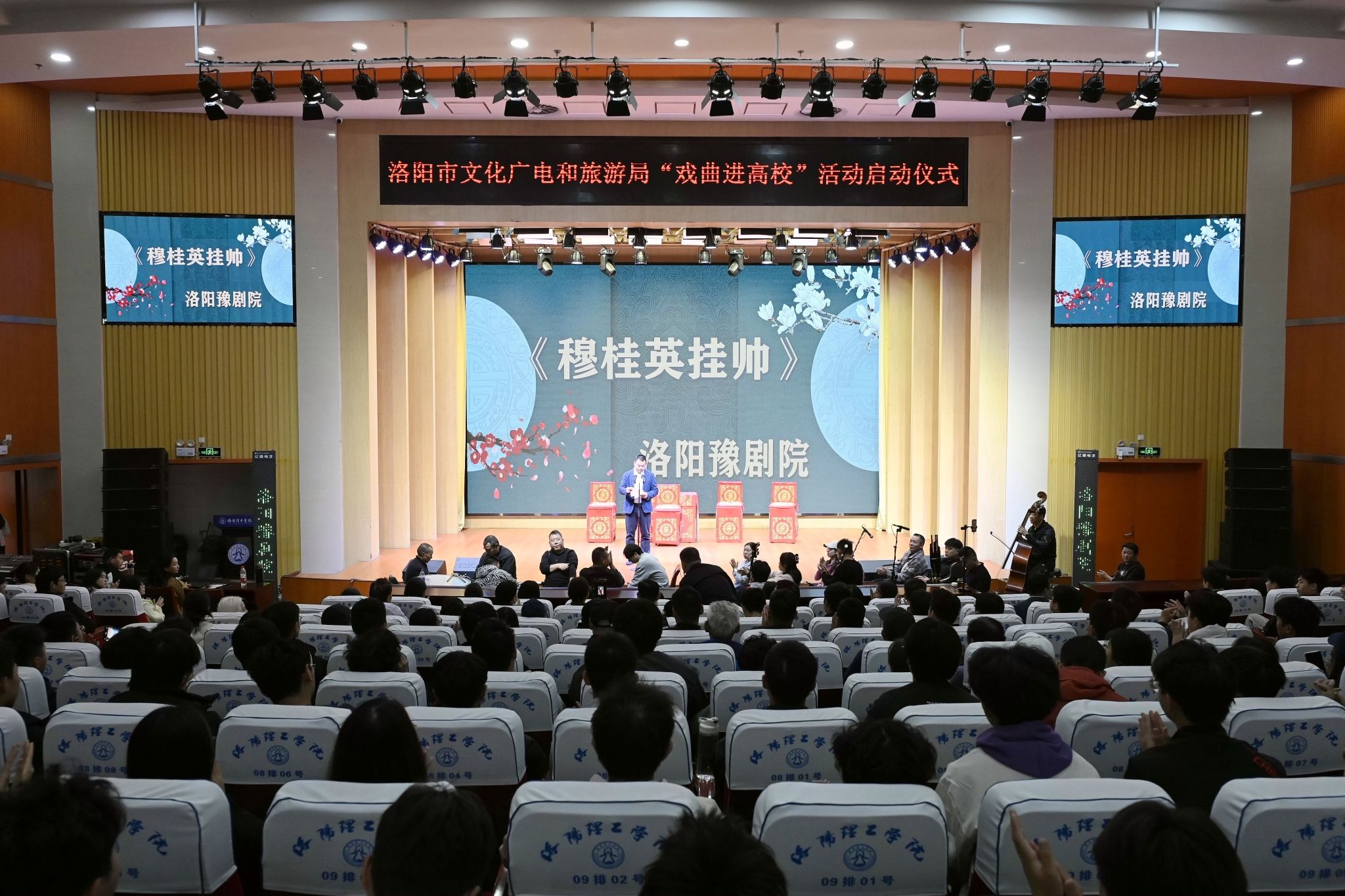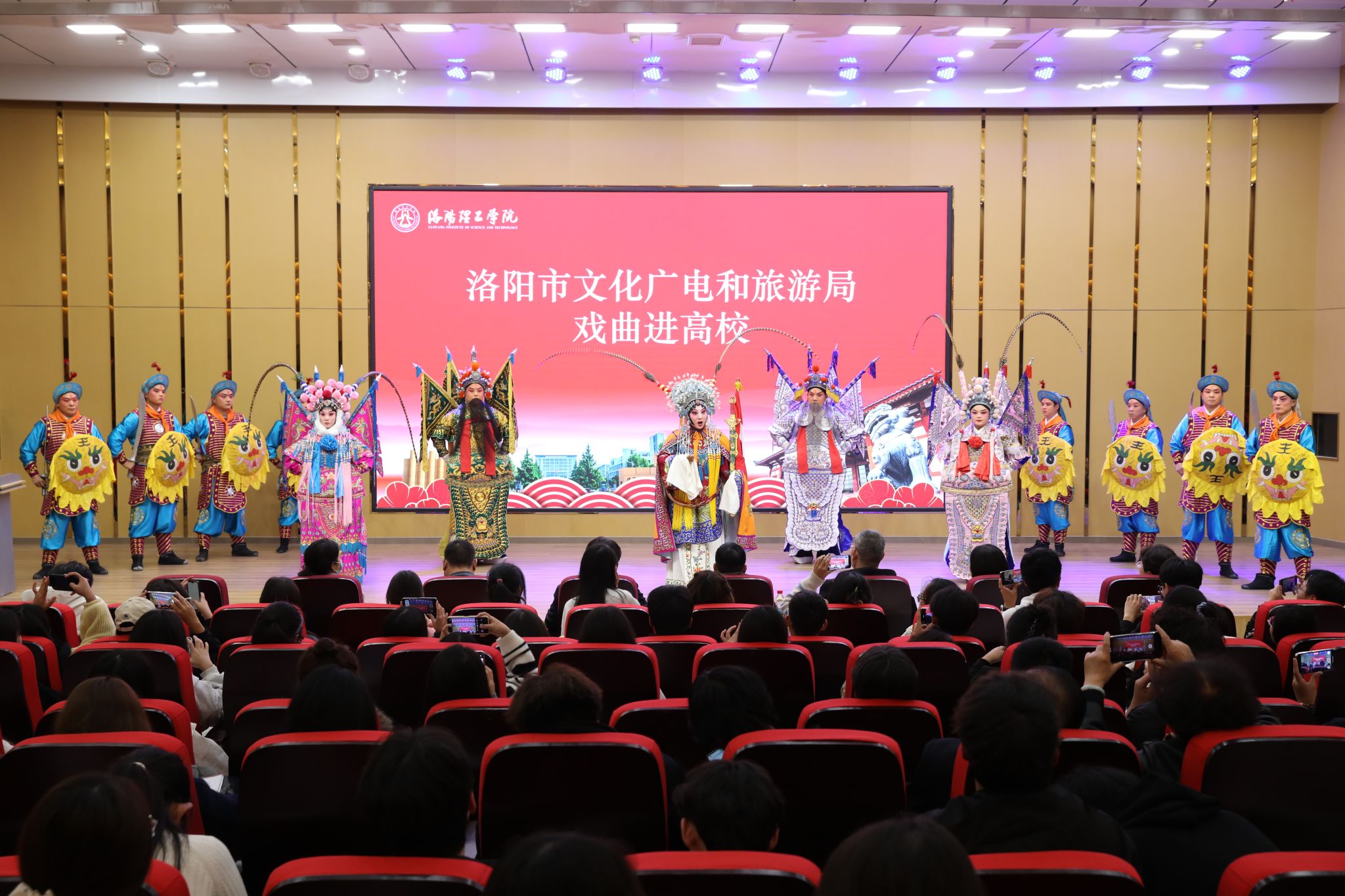 启动仪式后,洛阳豫剧院的演员们分别在王城校区图书信息中心报告厅和开元校区图书馆报告厅为师生们带来经典豫剧《穆桂英挂帅》等剧目,精彩演绎赢得观众阵阵掌声。