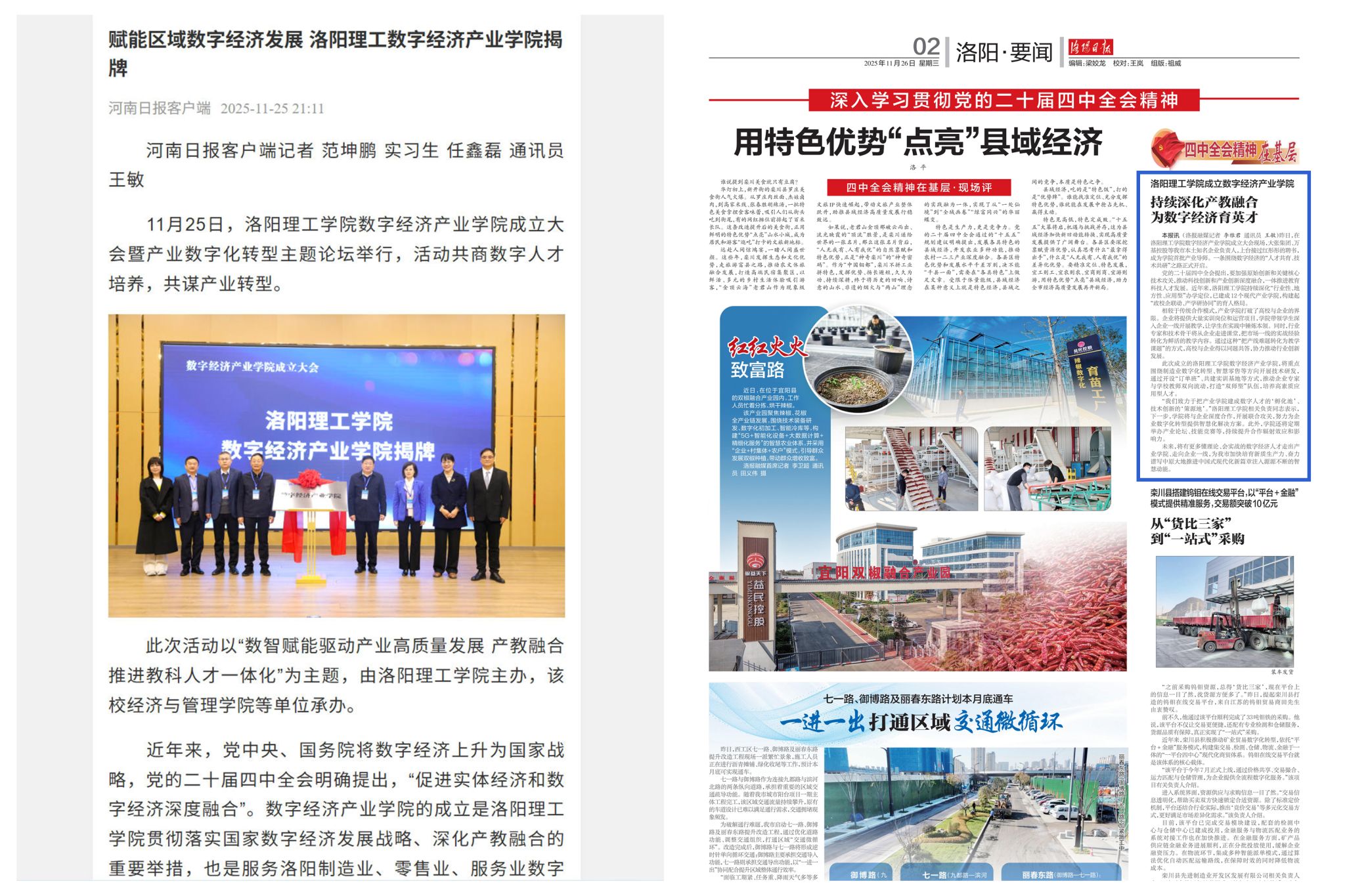 2.《洛阳日报》,2025年11月26日第002版洛阳•要闻,《洛阳理工学院成立数字经济产业学院 持续深化产教融合 为数字经济育英才》