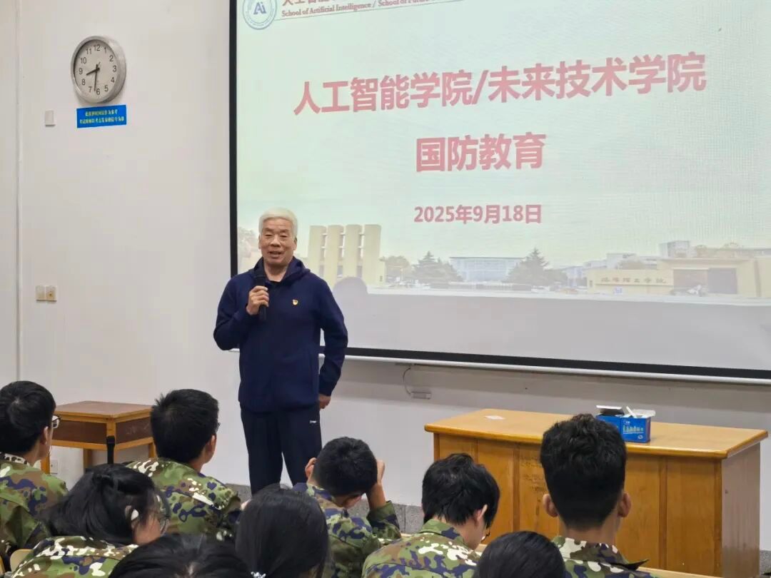校关工委爱国主义报告团团长李亚非带领薛峰、吴争奇走入人工智能学院为新生作爱国主义主题报告。他们分别结合自身经历与感悟,让学生们深入了解当年中国军民抗击侵略的悲壮情景,从英雄壮举中深刻领悟坚守信仰、视死如归的崇高爱国精神,感受抗战的艰难和美好生活的来之不易。