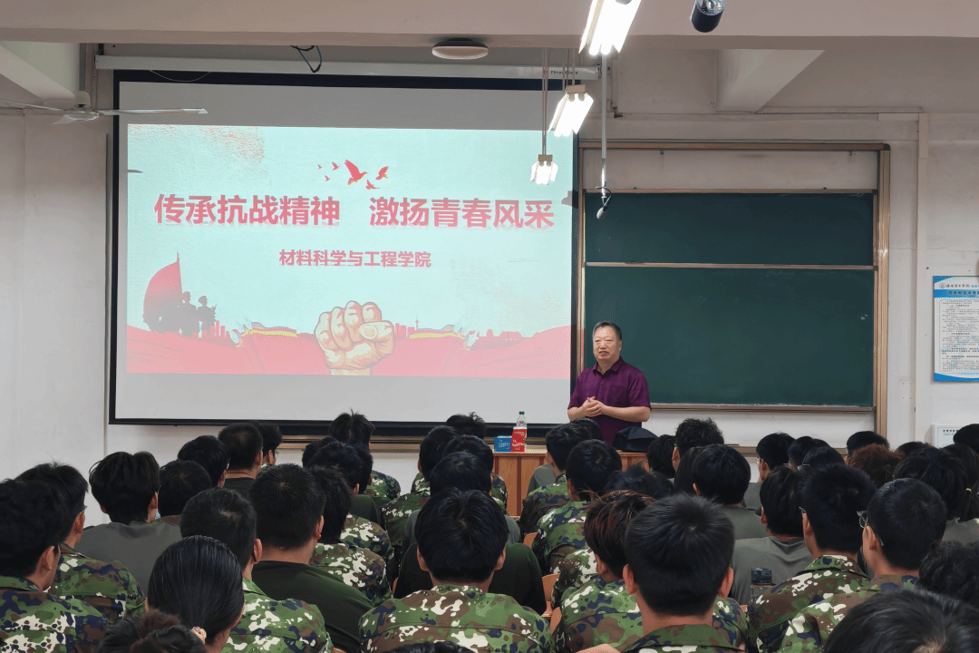 校关工委委员、爱国主义报告团成员李跃进走入材料科学与工程学院,同负责新生军训的两位教官一同为新生作“传承抗日精神·激扬青春风采”爱国主义宣讲活动。李跃进结合学生实际,讲述了青年大学生面临的机遇和挑战,勉励同学们要树立终身学习的思想,把自己的前途和命运与祖国的发展紧密的联系在一起。两位教官结合自身参与“九三阅兵”的经历,给大家上了一堂生动的国防教育课。