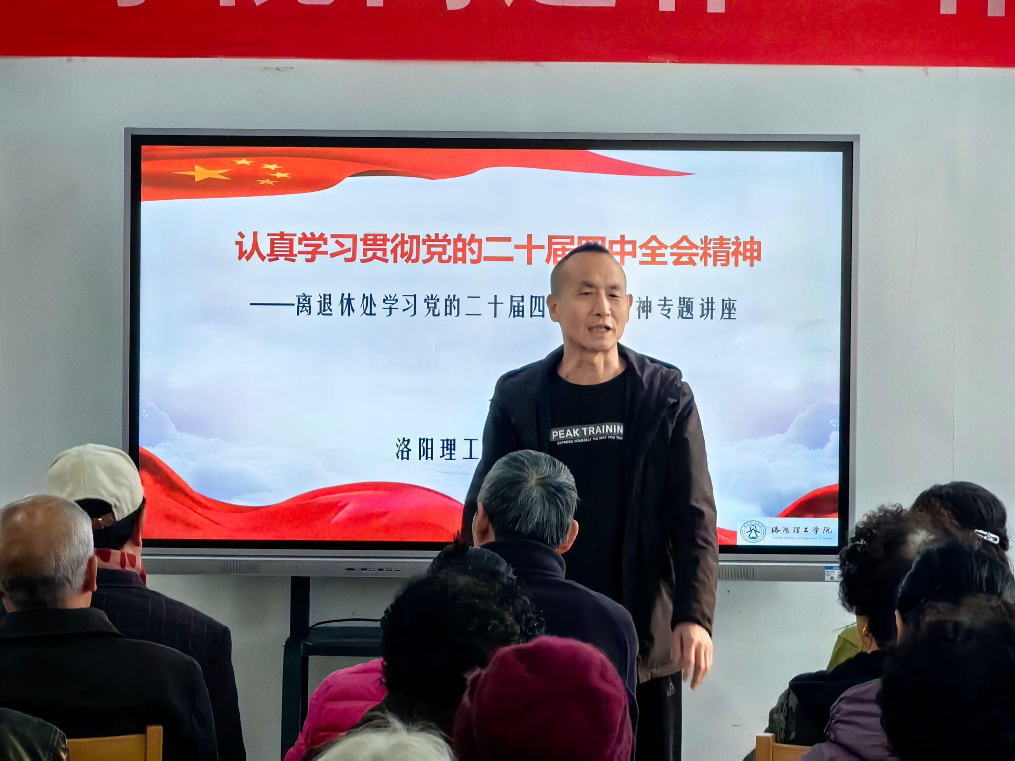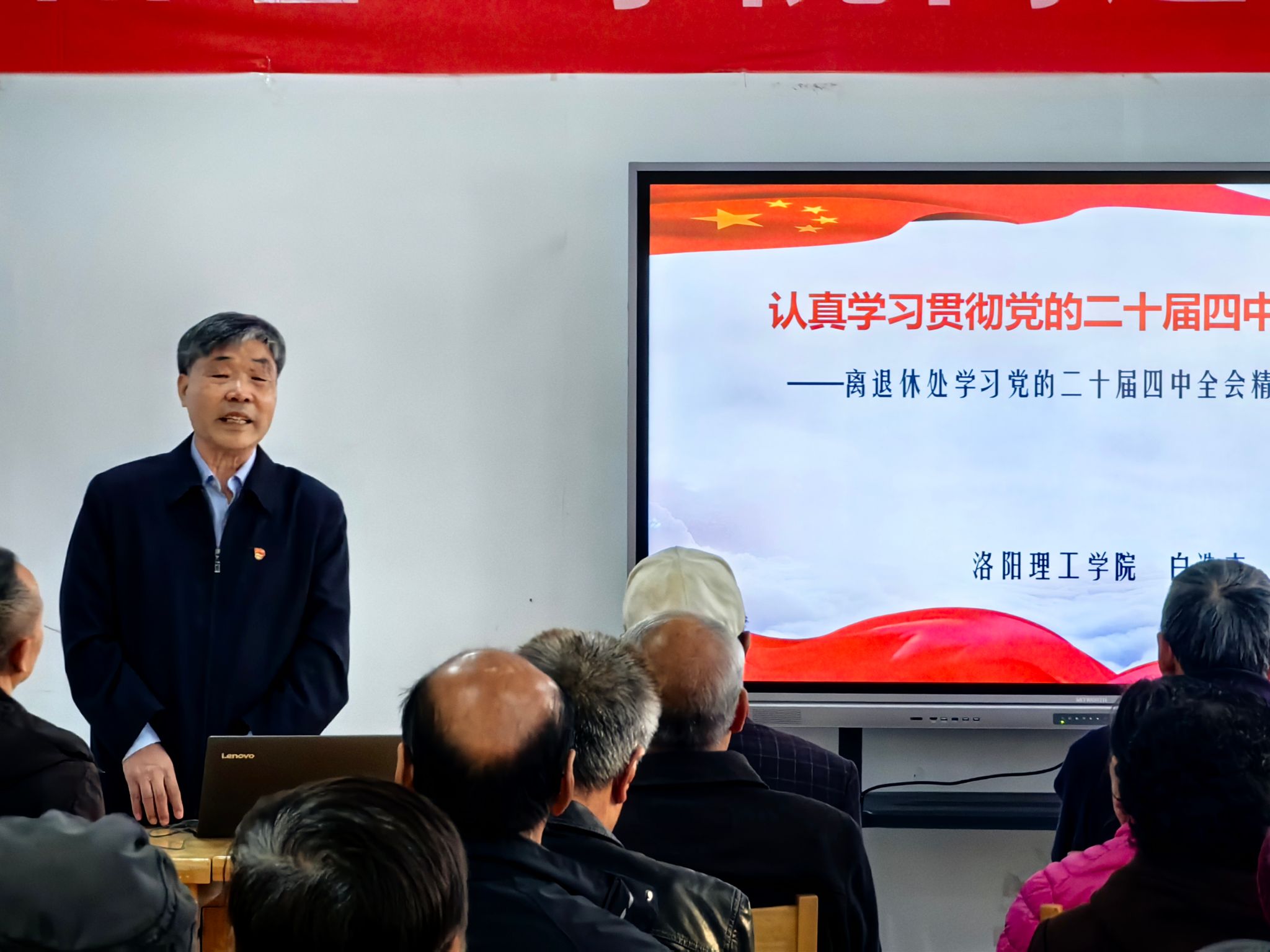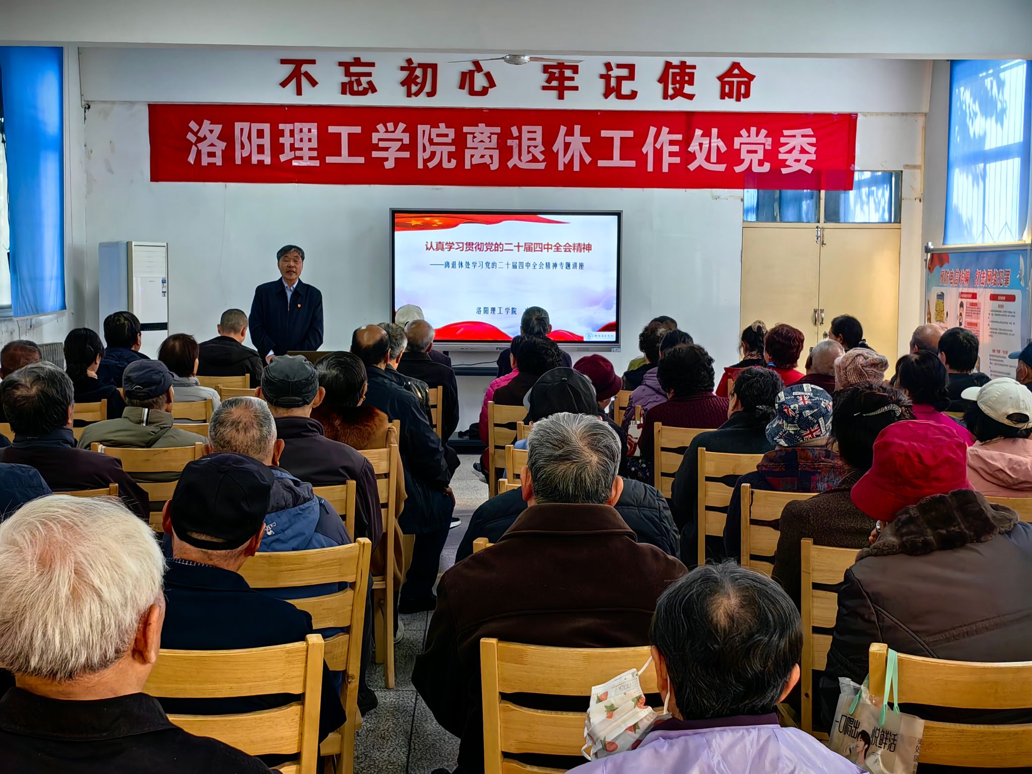 根据处党委工作安排,11月13日下午,离退休工作处党委在珠江路活动室召开专题报告会,聆听白选杰教授对党的二十届四中全会及“十五五”规划的精神解读。珠江路退休第一、第二、第三党支部60余名党员同志参加报告会。
