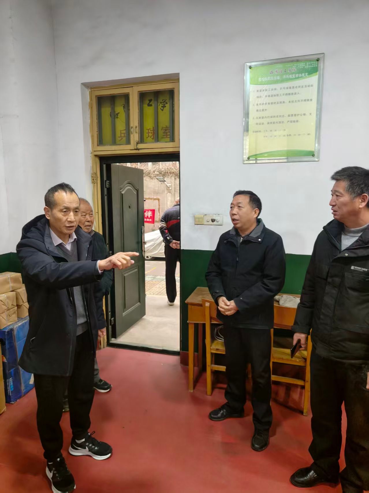 检查组一一查阅消防器材记录、查看用电设施、排查安全隐患,重点核查活动设备运行维护情况,消防器材是否完好、用水用电管理是否规范等。针对检查中发现的具体问题,杜文亭现场提出整改意见和要求,强调活动室安全无小事,必须常抓不懈。要求大家一要提高站位,压实责任,时刻绷紧安全稳定这根弦。二要坚持问题导向,发现隐患立行立改。三要强化服务意识,做实做细各项服务保障工作,营造和谐的活动环境。