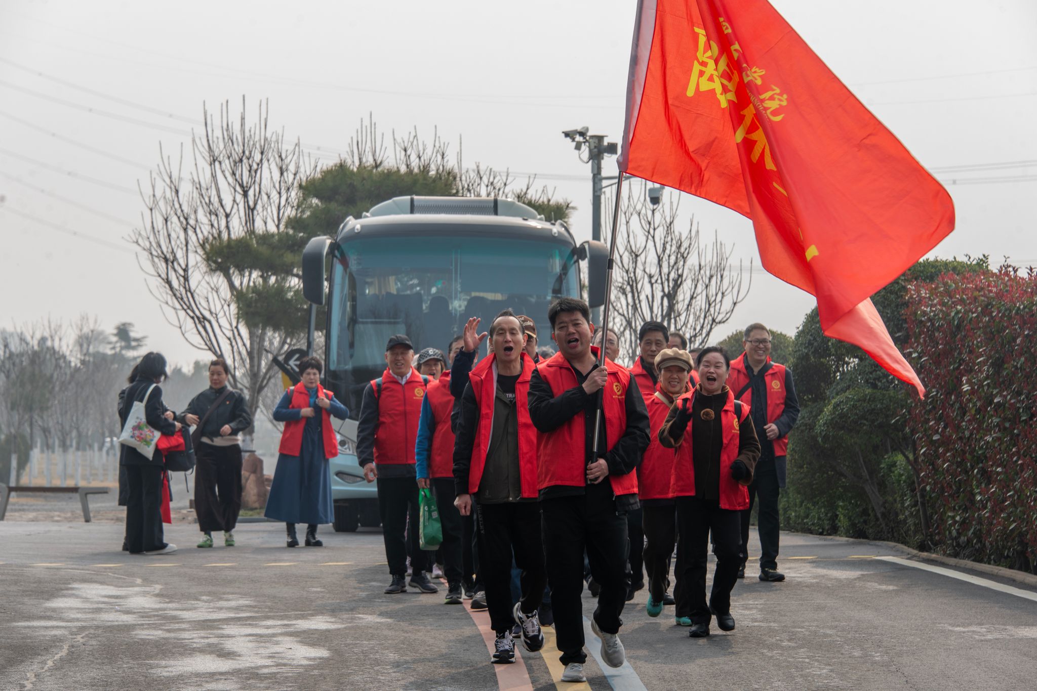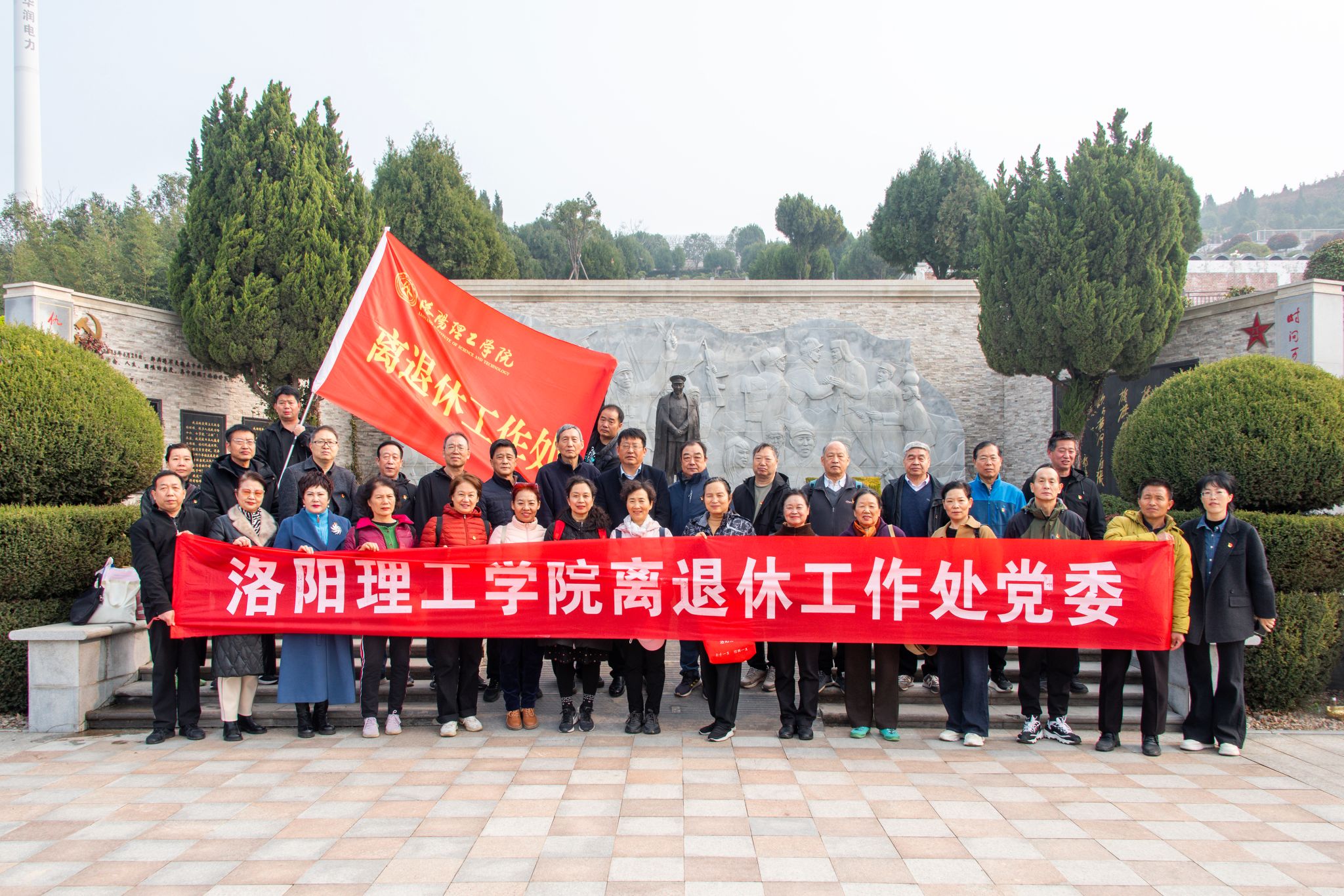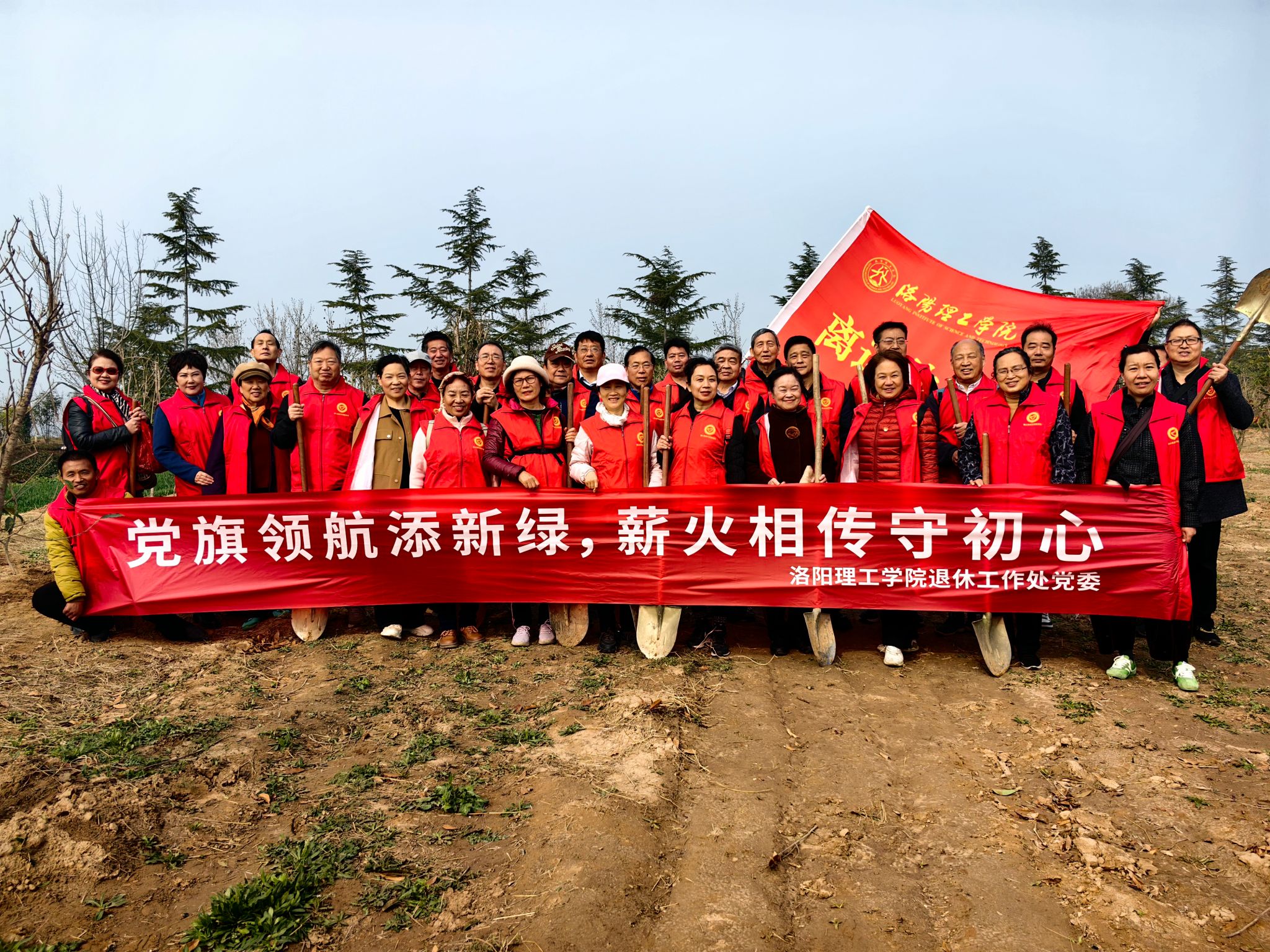 近年来,离退休工作处党委始终重视“党建红”和“生态绿”的有机融合,以绿为媒、以行践志,每年三月份开展志愿植树和爱国主义教育活动,让红色基因融入血脉,让“绿水青山就是金山银山”的生态理念深入人心,在党旗引领下,用一堂堂行走的党课激励大家缅怀历史,厚植家国情怀,强化责任担当,以更加饱满的热情、更加务实的作风,奋力谱写中国式现代化建设的新篇章!