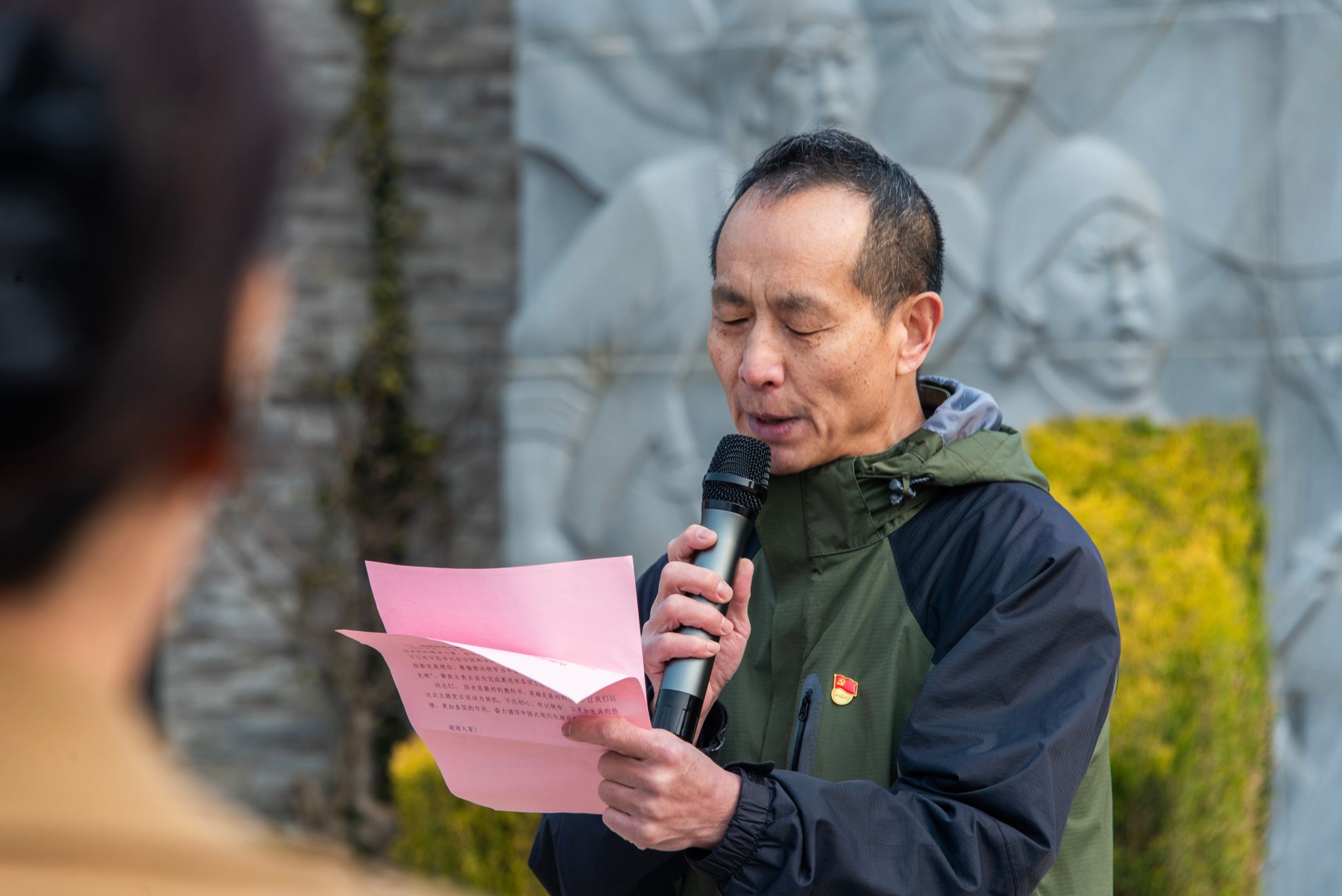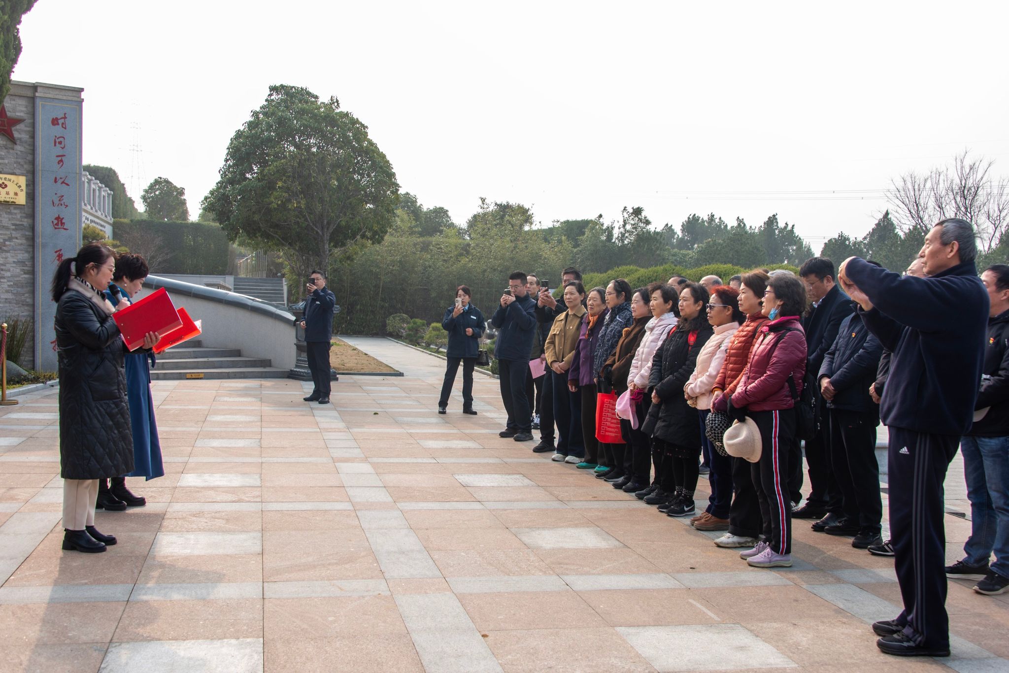 郭兴广场上,大家怀着无比崇敬的心情缅怀郭兴司令员,在凤凰山党支部书记和离退休工作处负责人的致辞中,感受郭兴司令员“为有牺牲多壮志,敢教日月换新天”的光辉人生。由爱国主义报告团成员书写、特邀嘉宾朗诵的诗歌《抗日传奇英雄郭兴永远活在我们心中》,则让大家在点滴感人事迹中感受先辈“我将无我,不负人民”的家国情怀。全体党员凝望郭兴司令员铜像,缅怀英雄,在党旗下庄严宣誓,重温入党誓词,在铿锵的宣誓声中,再次坚定不忘初心使命,赓续红色血脉的决心。