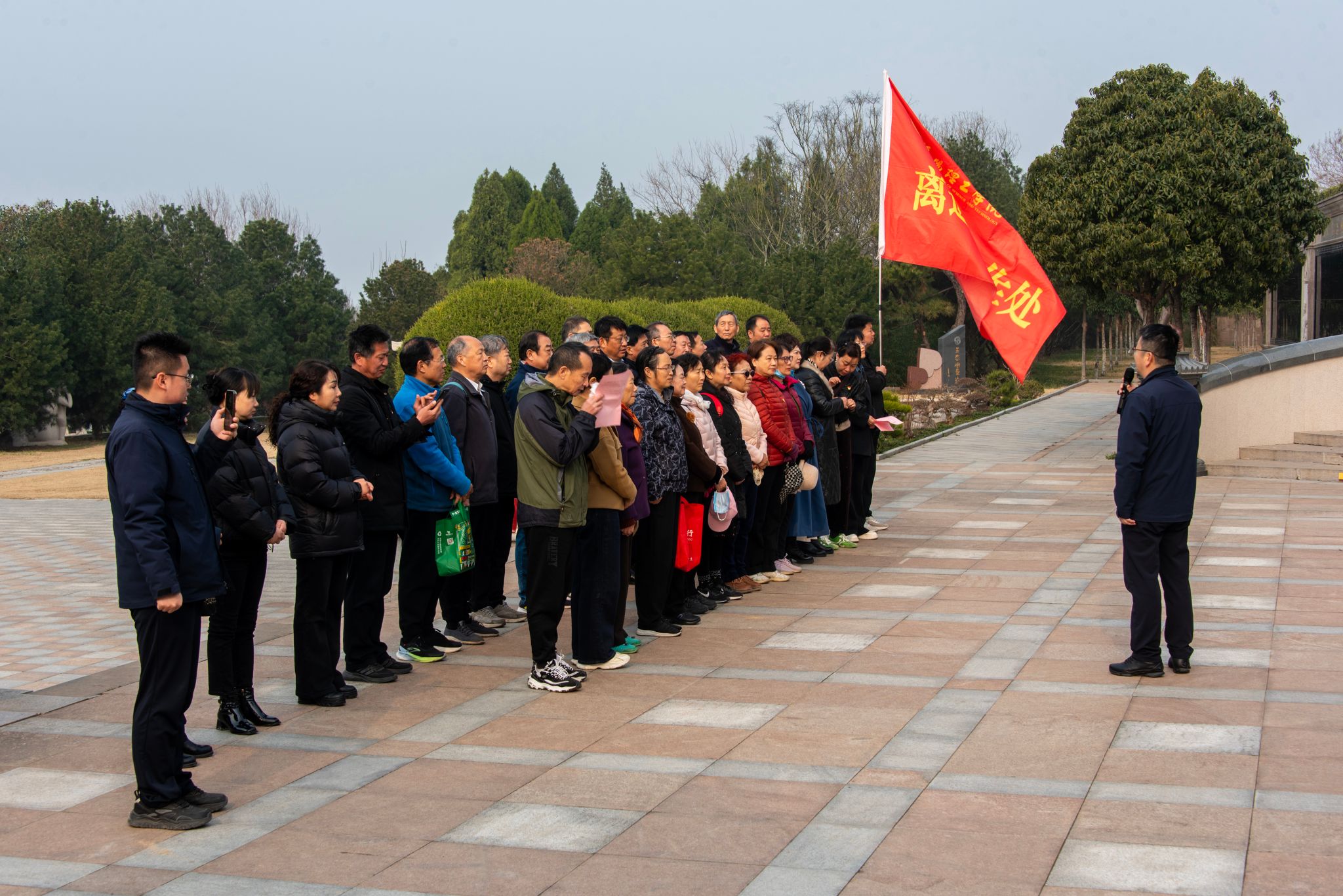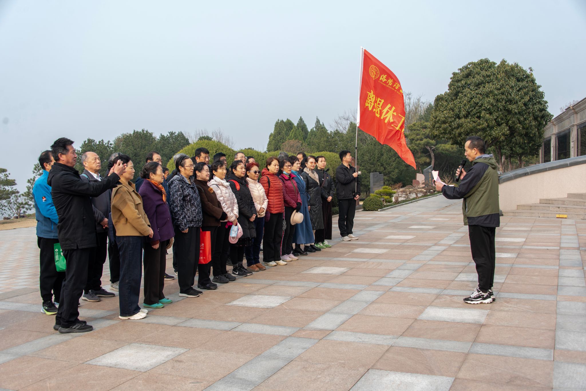 春染山河添新绿,心植家国铸忠魂。在学雷锋志愿服务月与植树节交汇之际,3月11日上午,离退休工作处党委组织离退休各支部书记、爱国主义报告团成员、“夕阳红”志愿服务团队、各老年协会代表及全体在职党员,到凤凰山开展“党旗领航添新绿·薪火相传守初心”主题党日活动,在缅怀先烈中汲取精神力量,在植树护绿中强化责任担当。